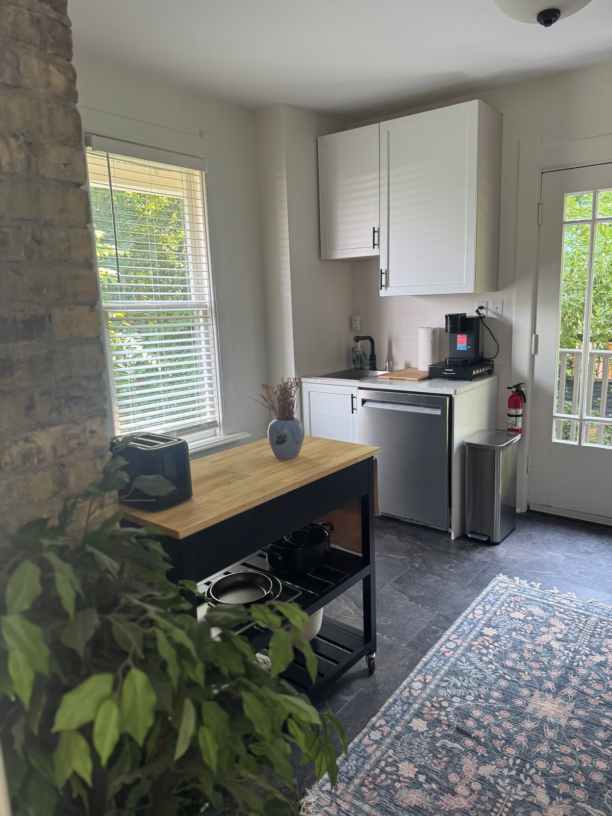 Khona eduze nendawo eyintandokazi yesidlo sasemini, i-Malume Wolfie's Breakfast Tavern ne-Orange ne-Blue i-boutique encane. Jabulela le yunithi ephezulu yomlando esanda kubuyiselwa. Izinja zamukelekile (kukhokhwa imali eyengeziwe yesilwane esifuywayo), le yindawo ezungezile elungele ukuhambahamba kwezinja. Siyaxolisa abathandi bamakati kodwa AWAVUNYELWE AMAKATI. Ungahamba ngezinyawo uye enkabeni yedolobha i-Milwaukee, ukufinyelela okulula ku-Fiserv Foramu yemibukiso nemidlalo ye-Bucks nezindawo zokudlela eziningi ezinhle. Unesifiso sokuqasha iyunithi ephezulu nengaphansi ndawonye? Sithumelele umyalezo!