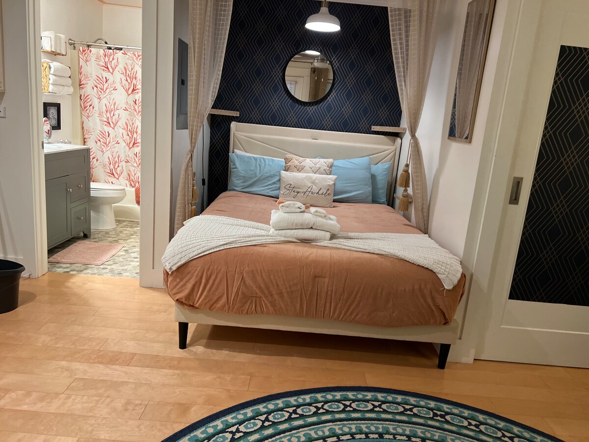 *AYIKHO IMALI YOKUHLANZA*UMBHEDE OMKHULU * INDAWO ENHLE * Ivulekile. Ikhaya. Inakho konke. Itholakala endaweni ethulile yedolobha lase-Newport, le ndlu yezivakashi esanda kulungiswa ihlose ukujabulisa. Igumbi lokulala elilodwa langasese linombhede omkhulu, usofa wokulala w/ indlovukazi egumbini lokuphumula. Ilungele imibhangqwana nemindeni emincane! I-Cherry Point- 8 Miles I-Atlantic Beach- 11 Miles I-Emerald Isle- 18 Miles Beaufort- 15 Miles Ama-Silos e-Newport- 1 Mile I-Butterfly Kisses Pavilion- 3 Miles Ipulazi e-West Prong Acres- 4 Miles
