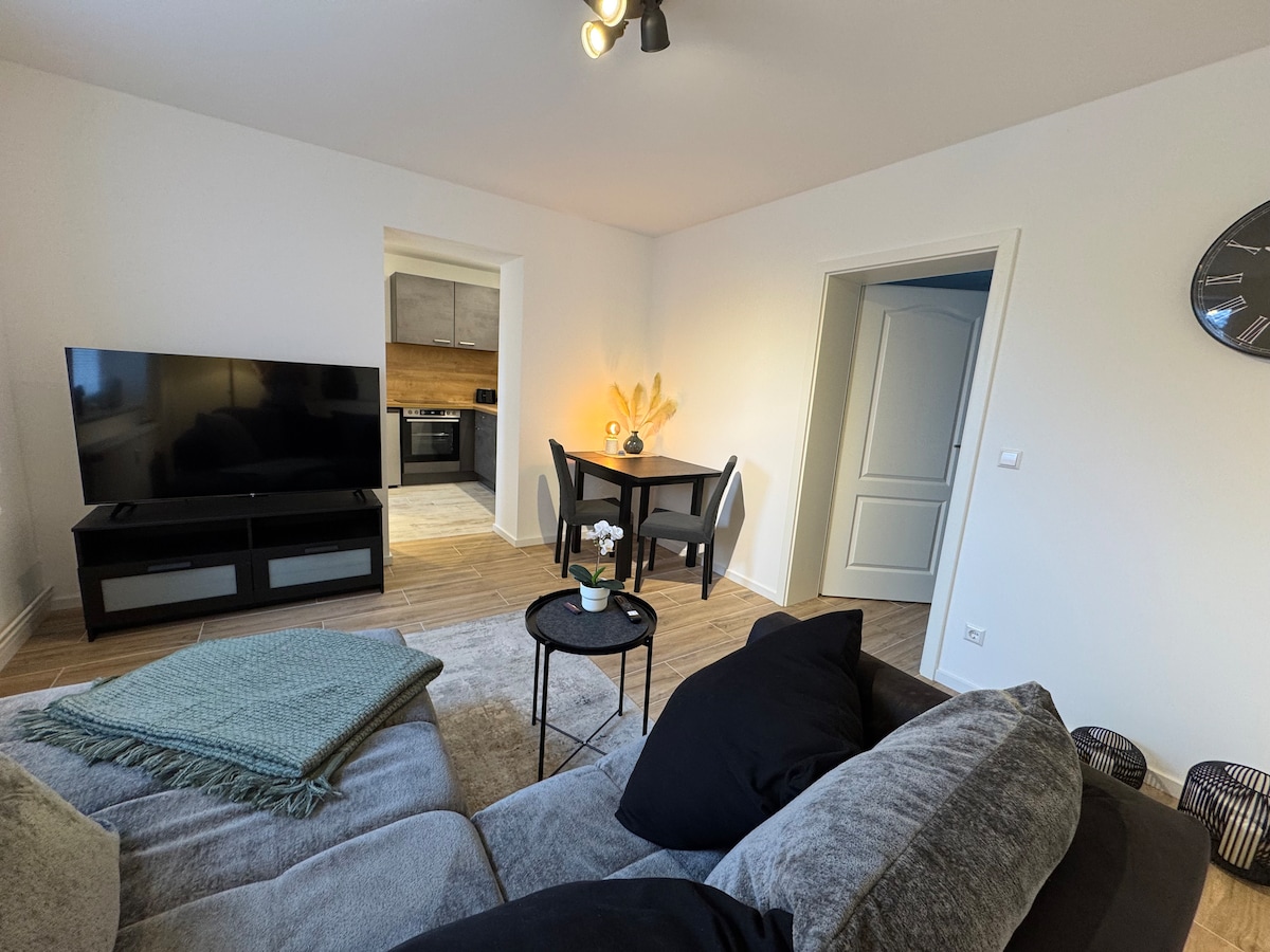 Uyemukelwa esidlekeni sami sedolobha elincane I-RV yomfowethu yaba ugqozi kuleli fulethi leholide. Ngangifuna indawo yokuphumula enginikeza konke engikuthola kubalulekile futhi kujabulisa endaweni encane: Umbhede othokomele, ikhishi elinakho konke, indawo yokugcina izinto nosofa wokuphumula, negumbi lokugezela elikhulu elinomshini wokuwasha. Ukuthula bekubalulekile. Idizayini ekhangayo nobumfihlo.