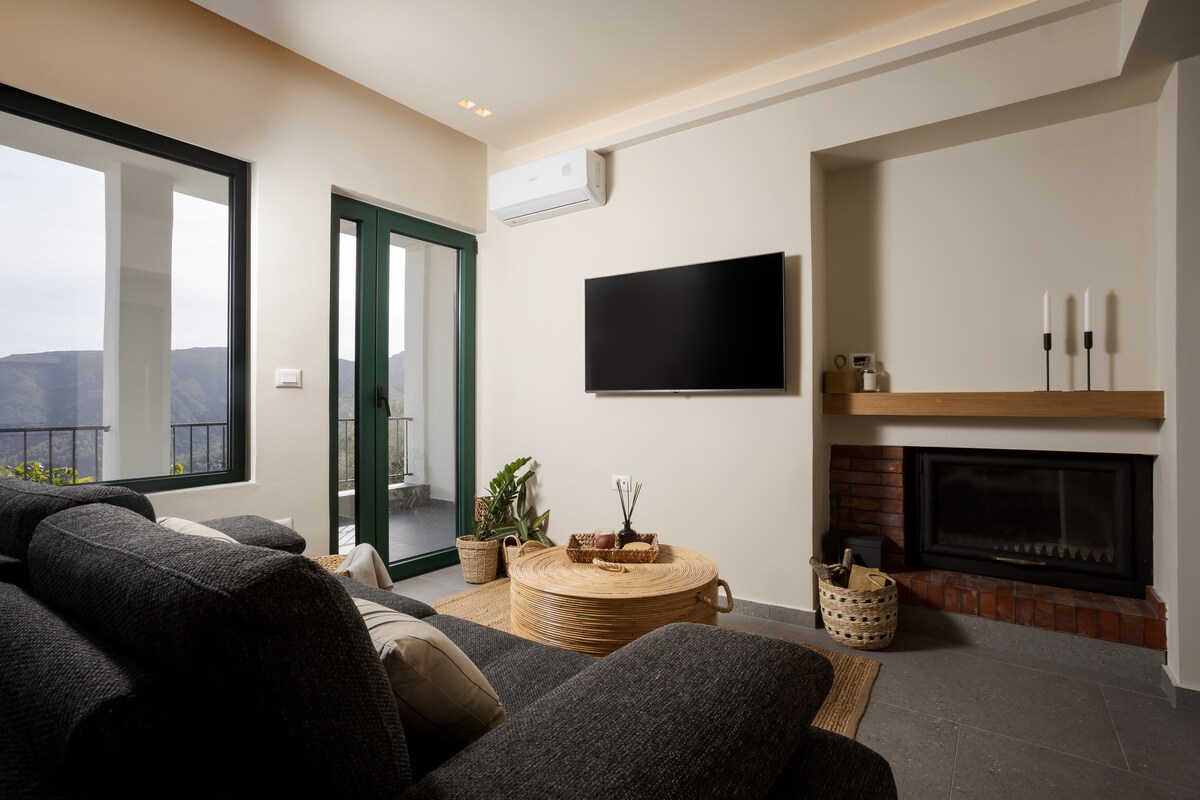 Renovated- traditional 100 year old stone house (74, 91 sq.m.) reminiscent of a shelter. Settled in a small village named Zourva, at an altitude of 650 m. in the heart of the White Mountains. Furnished, with air-conditioning, fully equipped kitchen, TV and energy fireplace for cold winter nights. Two large balconies with stunning views of the cypress forest and Tromarissa gorge. There are two taverns in the village, and also two beautiful hiking paths for those who love hiking.
