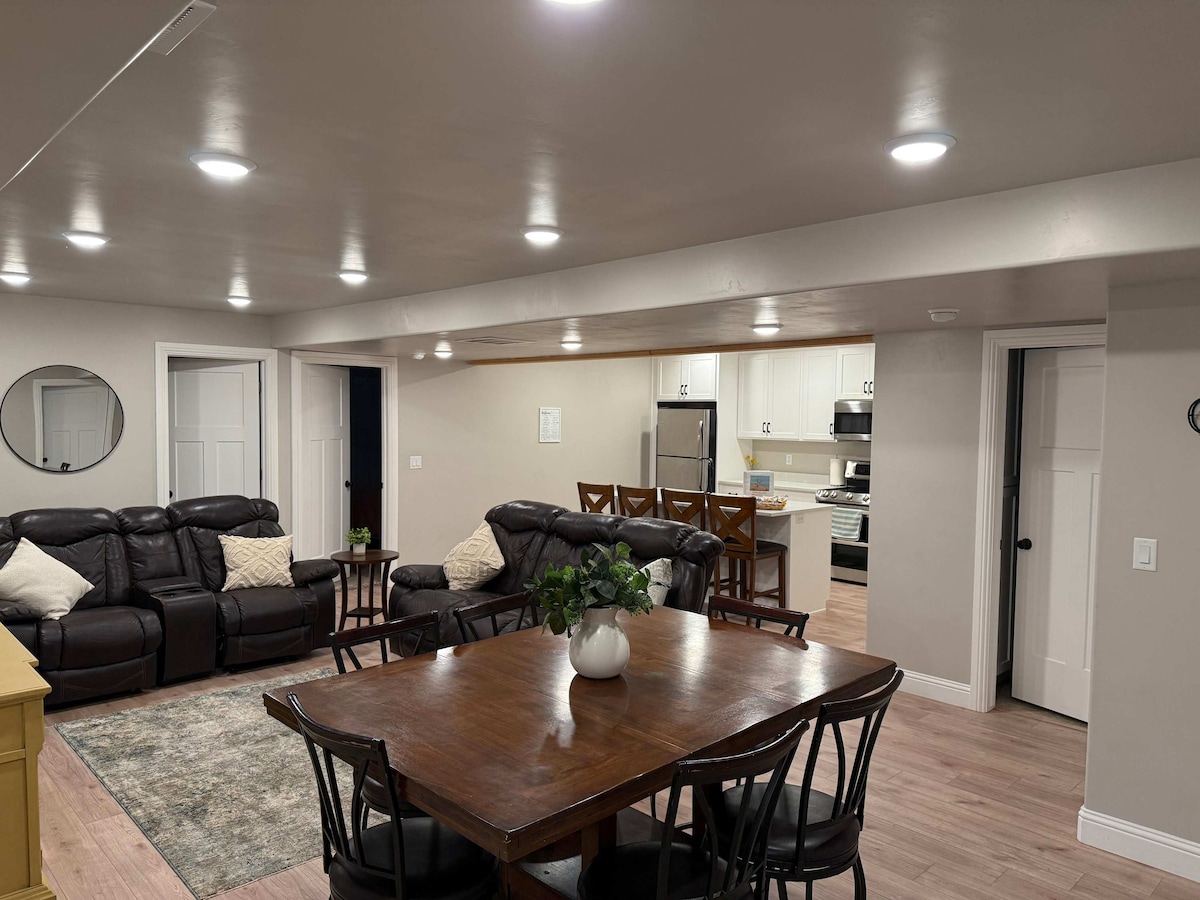 Come relax at our comfortable basement apartment with private outside entrance. Treat yourself to a BBQ, roast hotdogs, have a family game night, take a walk to the park or just relax and catch a show on Disney+ or Amazon Prime. Enjoy our safe and quiet neighborhood within walking distance of the beautiful Lions park, skate park and swimming pool. We're only a few blocks from the entrance to the Paiute ATV/UTV trail system and popular mountain biking trails (and shuttle meeting place).
