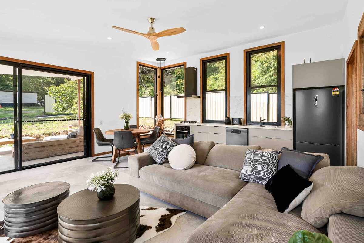 Ivikelwe yisihlahla somkhiwane esineminyaka engu-500 ubudala, esibekwe phakathi kwezintende zase-Bangalow futhi ebheke i-Ewingsdale creek, i-Fig Tree Villa inikeza indawo yokuphumula ethulile nekhethekile. Uhamba ngemoto nje imizuzu engu-5 ukusuka emabhishi, ezindaweni zokudlela, nasezitolo zokuthenga zase-Byron Bay, uzozizwa sengathi ukwelinye izwe elimangalisayo, futhi ngeke ufune ukuhamba. Jabulela ingaphakathi elihle namasevisi asezingeni eliphezulu ahlanganisa i-Netflix kule villa ekhethekile ezimele yodwa lapho uzoba khona nama-acre angaphezu kwamabili kanye ne-creek kuwe.