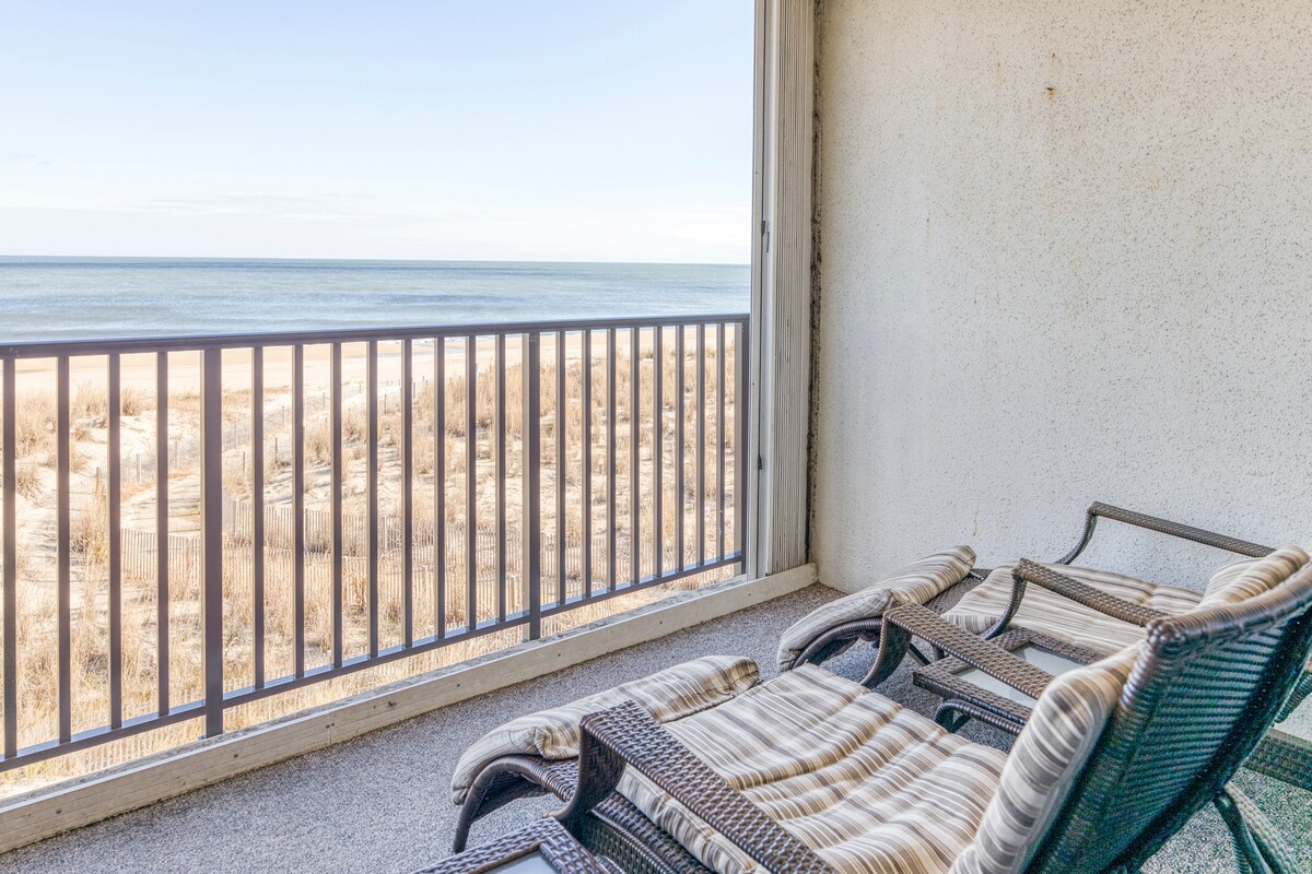 Welcome to our second home! You will appreciate the relaxing ocean views! This updated 2 bd/2 ba oceanfront condo feels like you are sitting on top of the beach. The condo hosts plenty of space for enjoying the expansive, direct ocean and beach views. Cook gourmet meals in the well appointed kitchen with granite counter tops. Enjoy the den as either a third bedroom or as a private oasis. We allow full or mini weeks, with check in and check out on either Thursday or Sunday in the summer.