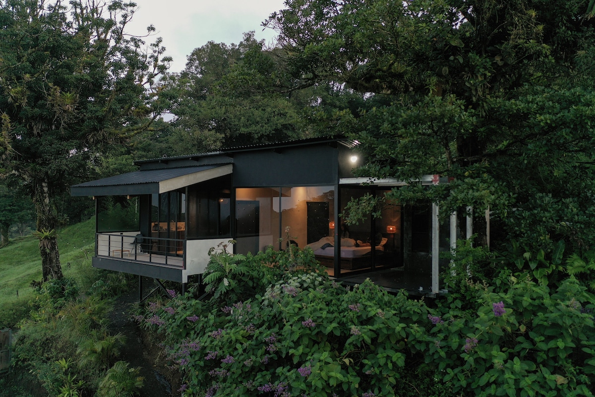 Izindlu zase-Jaguar zitholakala kalula phakathi nenkaba yedolobha kanye nezinye zezindawo ezithandwa kakhulu endaweni njenge-Canopy Zip Lining, Amabhuloho Amisiwe kanye ne-Santa Elena Nature Reserve. Ikhuthazwe izakhiwo zase-Nordic, i-Jaguar yakhiwe ngamakhaya angu-3 azimele, aphakanyiswe ezinsika, akunikeza umbono wokutshuza ezihlahleni. Izindlu ezingu-3 ziyafana nokho umbono ungashintsha kancane ukusuka kwenye uye kwenye. Izithombe ezisetshenziselwa indlu ngayinye ziyingxube yezindlu ezingu-3.