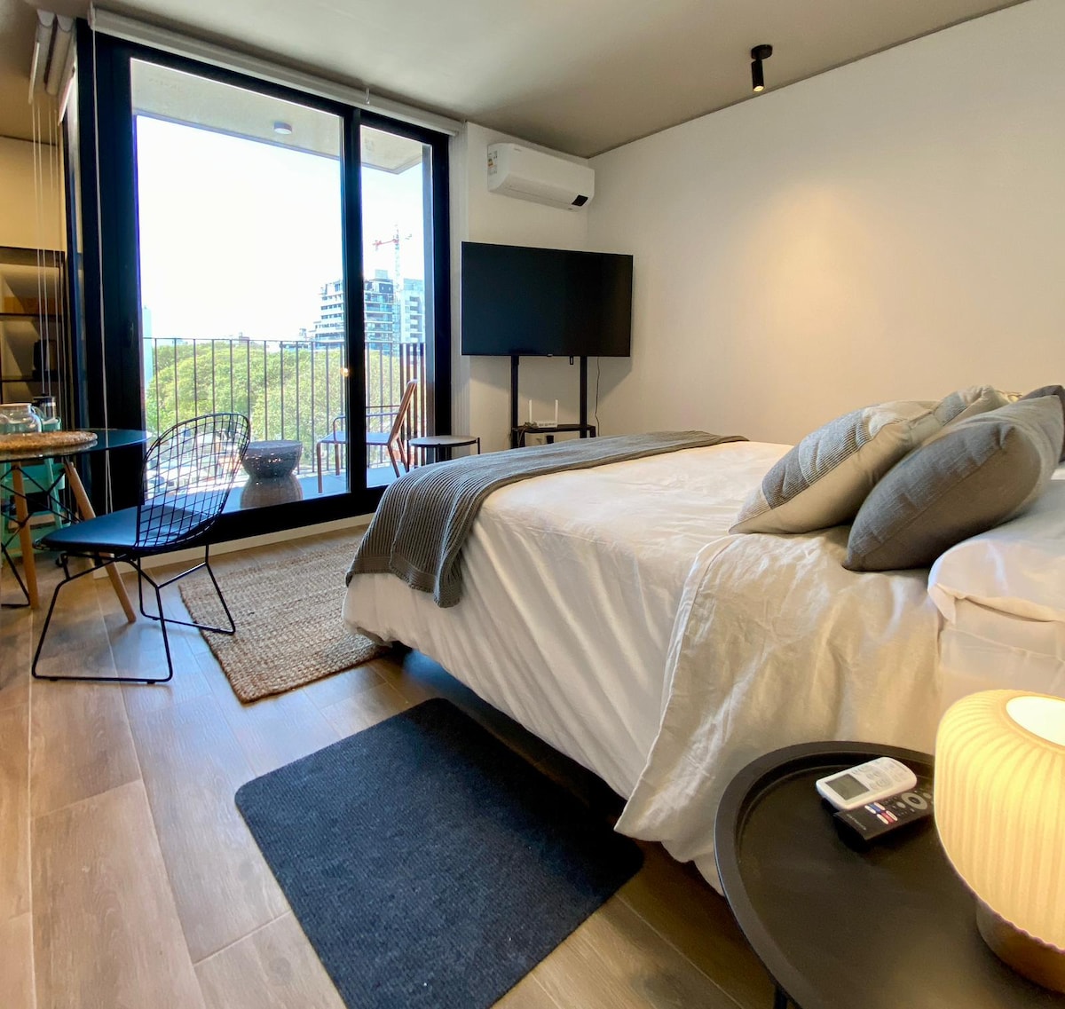 Ifulethi elivulekile le-studio esakhiweni esisha somklami, elinendawo yokupaka, ikhishi eligcwele, i-Wi-Fi esheshayo, ikamelo lokuphumula elinama-Smart TV angu-50 ne-DirecTV, i-balcony enombono omuhle ocacile wesibhakabhaka sedolobha, umshini wokuwasha, umbhede ophindwe kabili, igumbi lokugezela elivulekile. Lesi sakhiwo sihle kakhulu futhi sinendawo yokuzivocavoca negalaji lamahhala ukuze ulisebenzise. Indawo iyona engcono kakhulu edolobheni (Igalofu), eluhlaza, enokuthula, iphephile futhi iseduze nakho konke (i-Punta Carretas Shopping, i-Parque Rodó, i-Ciudad Vieja, i-Rambla, ibhishi).