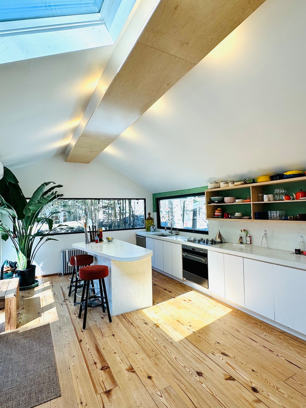 Indawo yokuphumula enokuthula kule ndlu yesimanjemanje eyi-A-frame yase-Catskills
