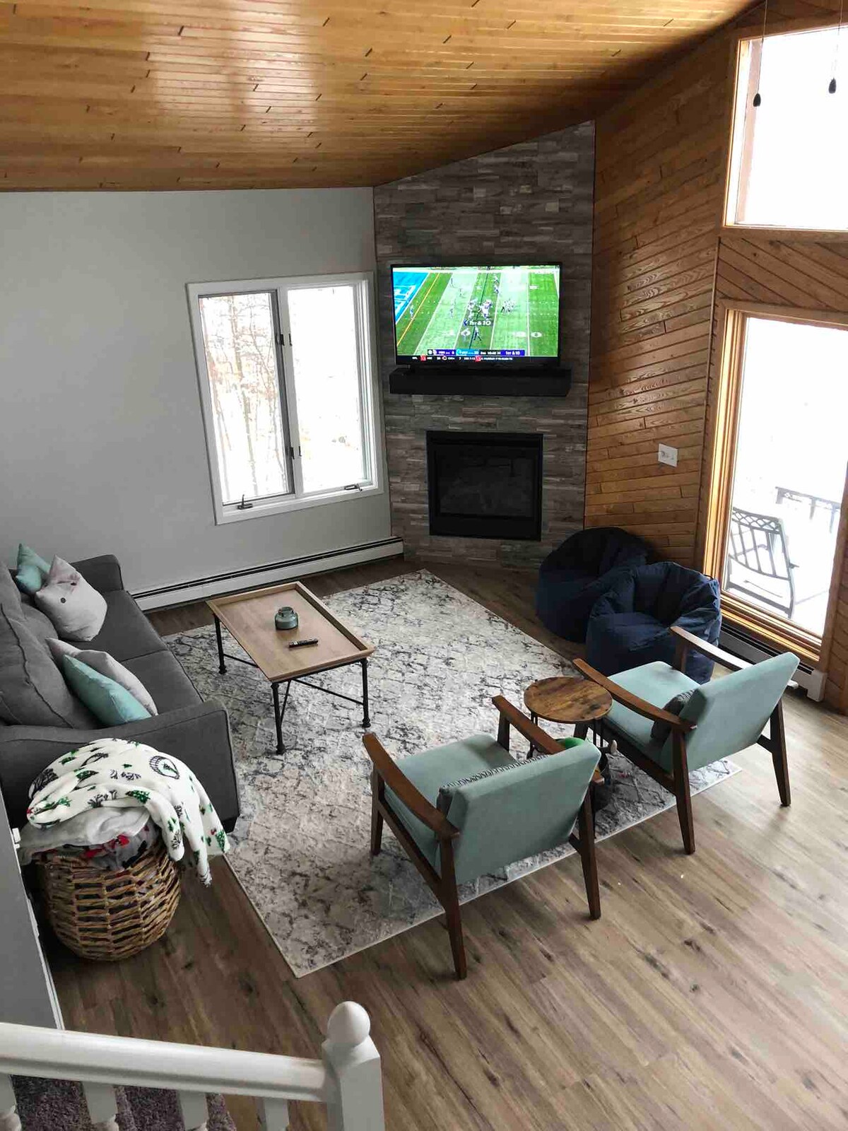 Le ndlu eyakhiwe ngamapulangwe yesimanje ingamamitha angu-390 ukusuka eMfuleni i-Kettle omuhle. Umfula waziwa kakhulu ngokugibela kwayo okukhulu, ukugwedla ngesikebhe nokugwedla ngesikebhe. Kunendawo yomlilo yegesi, ubhavu wamanzi ashisayo ne-WiFi. Ubhavu omusha wamanzi ashisayo ungahlala u-6. Umpheme omkhulu ophangaleleyo onezindawo zokuhlala. Umgodi womlilo we-Bon-fire ne-grill enkulu yegesi. Indlu eyakhiwe ngamapulangwe ibuyekeziwe futhi ithokomele kakhulu. Amalineni yi-Pottery Barn nezinto zikagesi zosizo zasekhishini! Umshini wokuwasha nowokomisa. Ama-acre ayisikhombisa amahlathi anezinyamazane nezinyoni zezilwane zasendle. Le ndlu eyakhiwe ngamapulangwe iyamangalisa!!