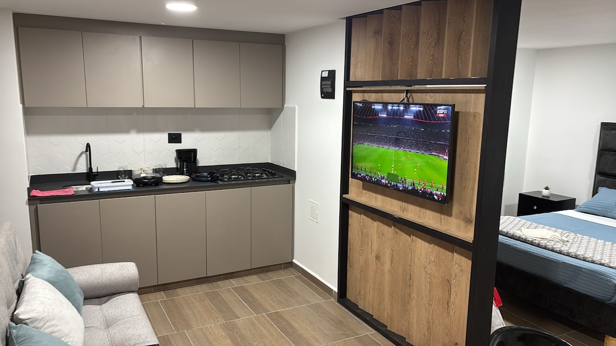 Jabulela ukuhlala okunethezekile kule fulethi ethokomele yestudiyo esendaweni emaphakathi ye-Popayán, emizuzwini embalwa ukusuka e-Campanario Mall. Indawo ilungile: uzokwazi ukufinyelela kalula amasuphamakethe afana ne-Tiendas D1 nama-Ara Supermarkets, kanye nezindawo zokudlela, amabhikawozi nezitolo. Konke lokhu endaweni ethulile nephephile. Kuhlanganisa: • Indlu yokugezela yangasese • Ikhishi elibekiwe • Umshini wokuwasha. • i-TV • I-Wi-Fi. Yindawo ewusizo, ethokomele futhi esendaweni ekahle, efanele uhambo lwebhizinisi noma ukuphumula.