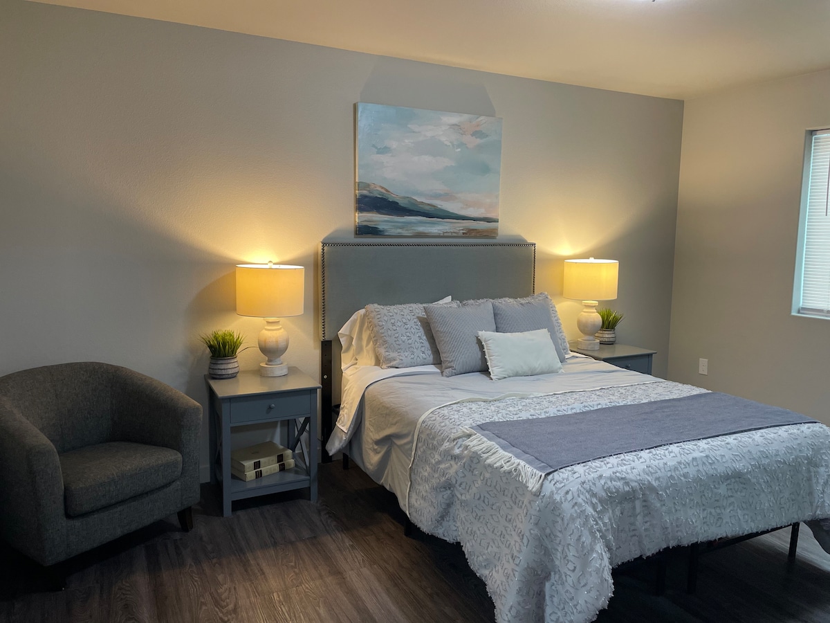 Jabulela indawo eyimfihlo ngokuphelele, enekamelo lokulala elithokomele elinombhede we-queen. Igumbi lokuphumula elikhulu elinombhede wosofa omkhulu nezihlalo ezengeziwe zezinye izivakashi. Igumbi eliluhlaza linendawo yokusebenzela ehlukile negumbi lokugqoka. Ikhishi likaFarra linakho konke okudingekayo ekuphekeni okuhlanganisa ikhofi, izinongo nokunye. Indawo yokudlela ihlalisa abantu abane kalula futhi inesikhala sabanye. Indlu yokugezela ilungiswe kabusha ngokuphelele futhi ineshawa engena kuyo. I-Wi-Fi yamahhala, i-Roku nezinto eziyisisekelo zeshawa kufakiwe.