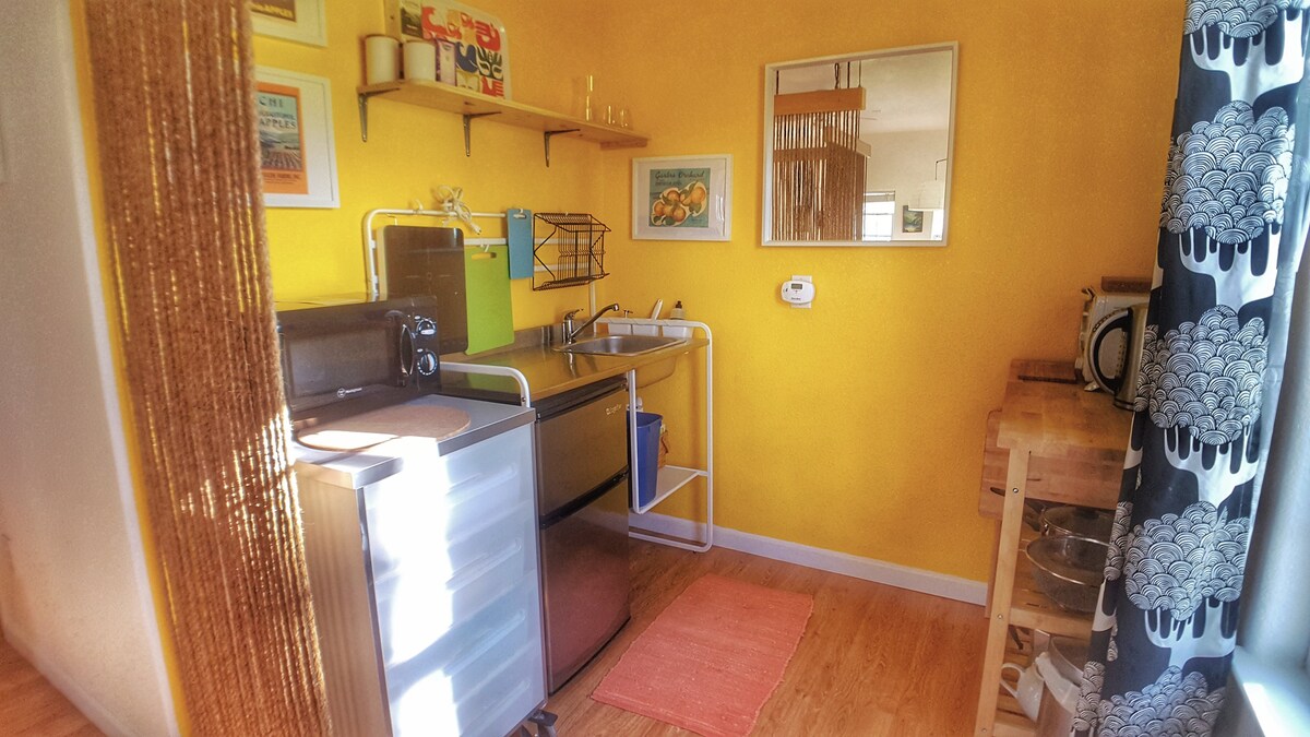I-studio sethu sendlwana esivulekile sinemibono ethandekayo ye-walnut orchard yethu, inqolobane yomlando nezikhala. Jabulela ukushona kwelanga phezu kwezivini ezingomakhelwane kusuka emphemeni wakho wangasese. Singamakhilomitha phansi emgwaqeni ovela epaki elithandekayo likaMbuso, okungukuthi uma ufuna ukushiya ipulazi lethu elincane elizolile. Futhi okuseduze kunezindawo zokwenza iwayini, imizila yokuqwala intaba-mlilo, nechibi elikhulu kunawo wonke e-California nelidala kunawo wonke. Ipulazi lethu lifakwe ohlwini luka-September 2022 kumagazini we-Sunset. Yihlole!