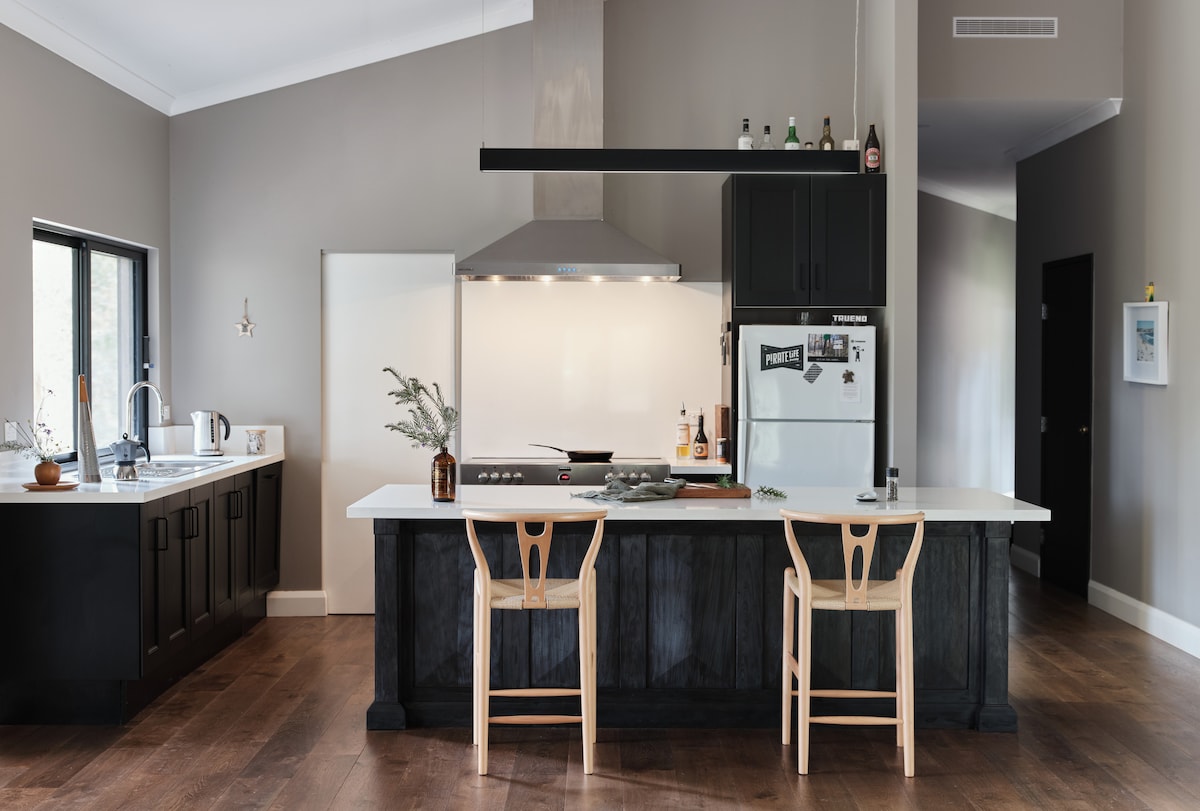 I-Milking Shed iyindlu eyakhiwe ngamapulangwe ethokomele esemagqumeni aluhlaza okotshani nasezindaweni ezinhle zesifunda sase-Hawkesbury enyakatho-ntshonalanga ye-Sydney. Indlu eyakhiwe ngamapulangwe yakhelwe ohlangothini lwegquma futhi ibheke ngokuqondile ehlathini elincane lama-eucalypts - ilungele ukuzama ukubona esinye sezivakashi zethu ezivamile ze-koala. Kungamamitha angu-200 ngale kwendlu enkulu kule ndawo, futhi kuyimfihlo ngokuphelele. Ziqoqe nencwadi, yondla imbongolo, thela iwayini, ujabulele i-corgi, noma uhlale kudekhi ubuke indawo. Iqhele ngamakhilomitha ayisigidi ukusuka ekunakekelweni.