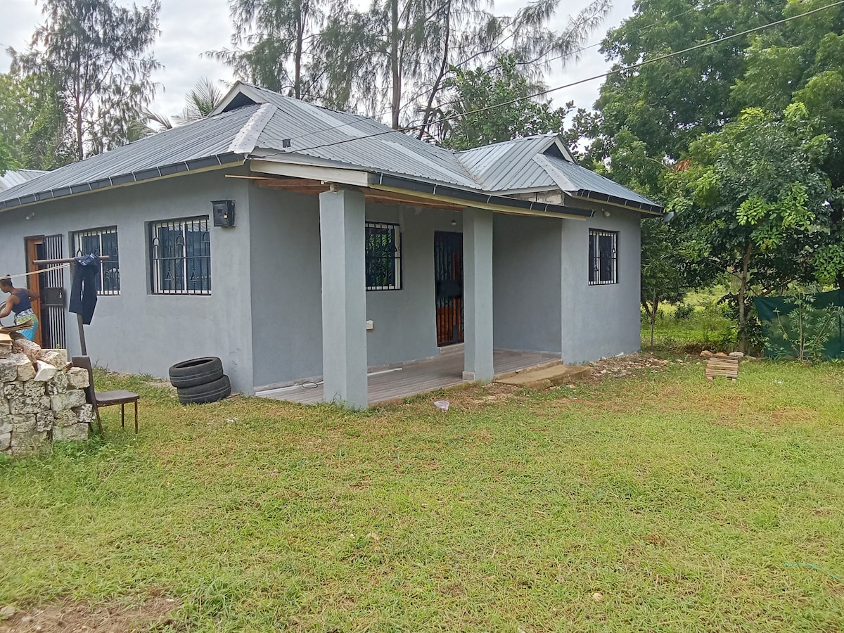 Siyakwamukela ku-BnB yethu enokuthula, enamakamelo okulala angu-2, etholakala emizuzwini engu-10 ukusuka e-Ukunda nemizuzu engu-20 ukusuka e-Diani Beach. Ilungele imibhangqwana noma imindeni. Feat: Amakamelo okulala angu-2 (alala imibhangqwana engaba ngu-3) Igumbi lokuphumula elinesihlalo se-L Ikhishi elinakho konke kanye nekhawunta yokudlela. Indlu yangasese enamathayili, ishawa. Ayikho ishawa eshisayo Uvulande ovulekile wokuphumula Kungakhathaliseki ukuthi ulapha ekuvakasheni kwangempelasonto noma ohambweni lomsebenzi wesikhashana, i-Kombani BnB inikeza ukuhlala okuhlanzekile, okuthulile, nokungabizi. Kombani, Kwale, Kenya.