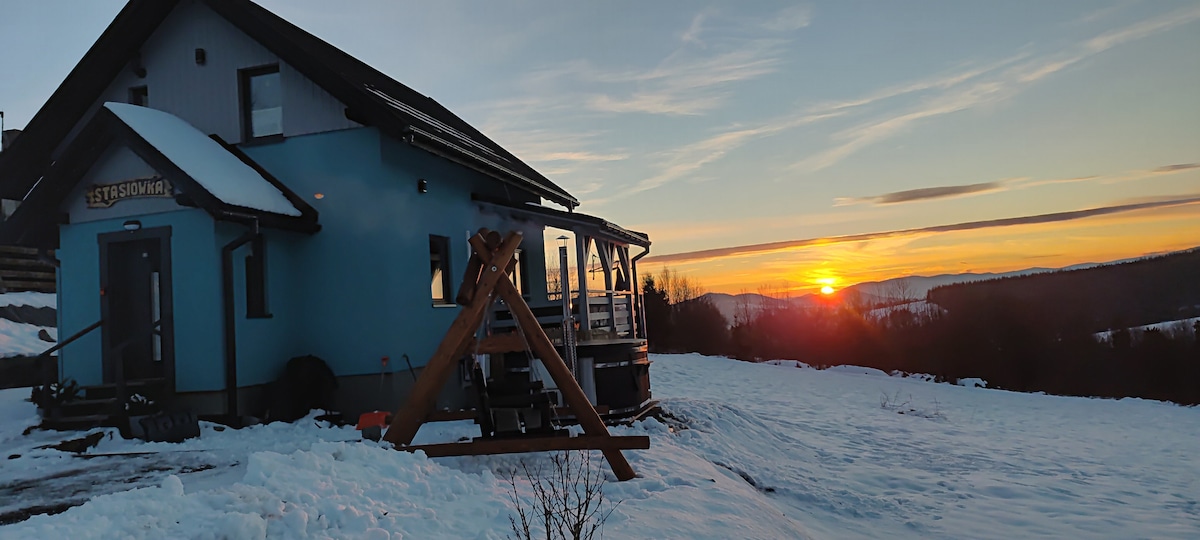 Find peace at "Closer to Heaven" a luxury retreat on Koskowa Mountain, 820m above sea level. Enjoy panoramic views of the Beskid Wyspowy and Tatra Mountains from a spacious terrace. This 88 sqm eco-friendly home is surrounded by 2,300 sqm of private land. Unwind in the year-round 5-person chlorine-free outdoor spa with 2 reclining massage seats. Pure spring tap water, an ice-maker fridge, and fast Wi-Fi add comfort. Trails, forests, and nature await – closer to heaven, closer to you.