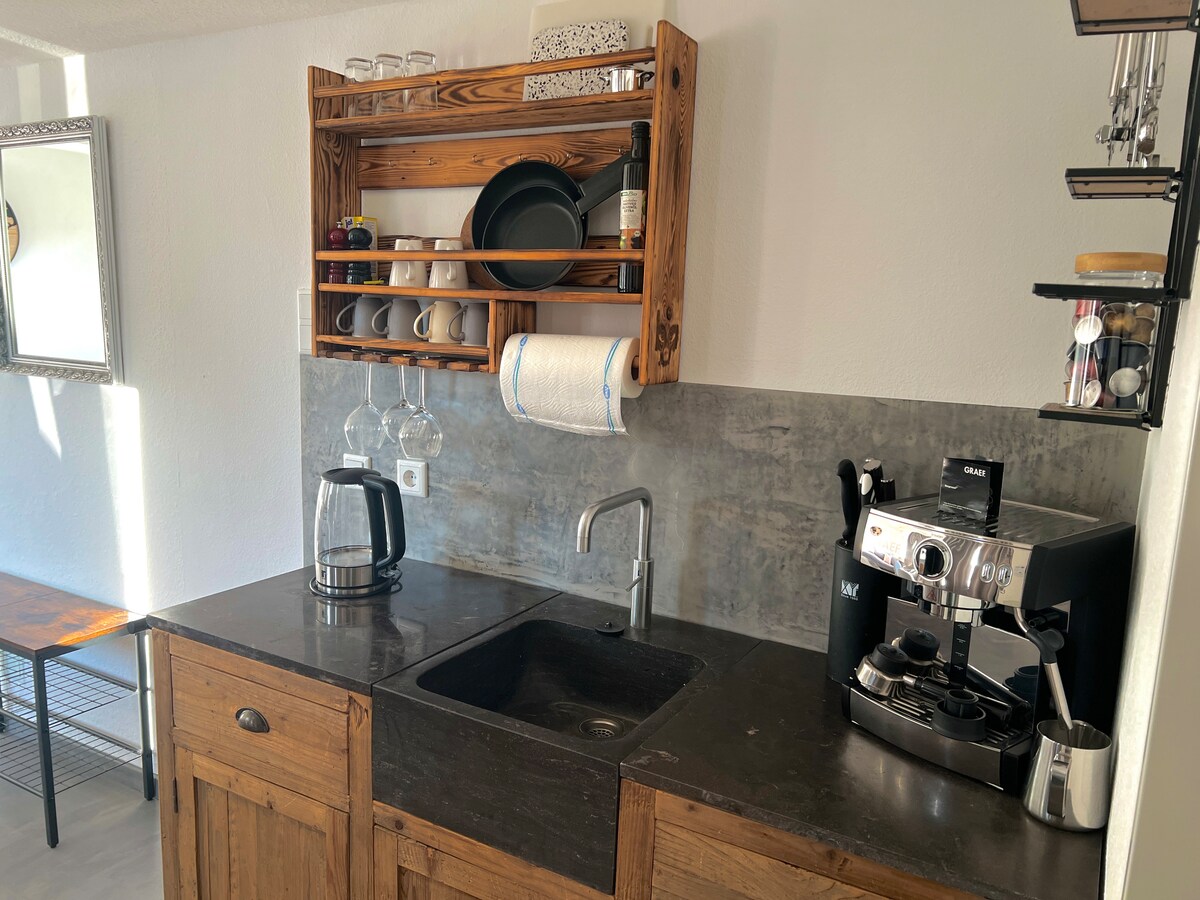 Indawo ekhethekile yokuhlala enesici se-loft. I-loft eyenzelwe ngothando olukhulu ngemininingwane enombhede ophindwe kabili nombhede wosofa wabantu abangu-3-4. Indlu yokugezela enkulu enobhavu/ishawa. Indawo evulekile enekhishi lokuzihlanganisela. Indawo yangaphandle yangasese enetafula nosofa wengadi. Naphezu kwendlu ehlanganyelwayo enendlu eyingqopha-mlando, ukuzimela okuphelele nobumfihlo. Kubathandi bemvelo indawo ekahle yokuhlala emngceleni wehlathi. Imizuzu engu-8 ukuya eLake Baldeney. Izithuthi zomphakathi (imizuzu engu-5 ukuya ebhasini/imizuzu engu-14 ukuya e-S-Bahn)