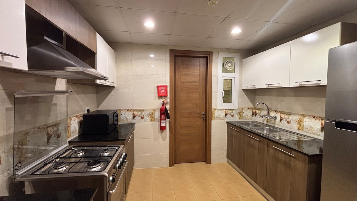 Siyakwamukela endaweni yakho yokuvakasha ethokomele e-Bowsher, Muscat! Leli fulethi elinokuthula elinegumbi lokulala elilodwa linegumbi lokuphumula elivulekile, ikhishi elinakho konke, namagumbi okugezela angu-1.5, alungele imibhangqwana, izihambi ezihamba zodwa, noma izivakashi zebhizinisi. Jabulela ukubuka ukushona kwelanga okubabazekayo kuvulande phezu kwe-Bowsher Sands. Itholakala ku-College Road, uqhelelene nezitolo zokudlela, izitolo zekhofi, namasevisi. Ngokufinyelela okusheshayo e-Muscat International Airport, e-Grand Mall, e-Oman Mall, nase-Muscat Highway, lesi yisizinda sakho esihle!