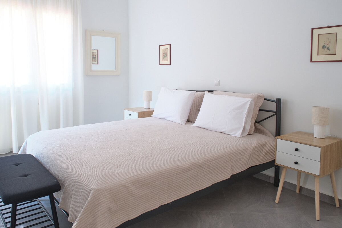 Ευρύχωρο και φωτεινό, περιμένει να φιλοξενήσει με χαρά, όλους όσους θέλουν να ευχαριστηθούν την απέραντη αμμουδιά με τα γαλανά νερά, απέχει 150 μέτρα από παραλία, μία βόλτα στο γραφικό κέντρο της Ναυπάκτου που απέχει μόλις 10΄ με το αυτοκίνητο. Απολαύστε το απογευματινό καφέ σας στη αυλή & χαρείτε το πράσινο της φύσης. Υπάρχει εξοπλισμένη κουζίνα για να ετοιμάσετε τα δικά σας γεύματα για εσάς & τους φίλους σας. Μείνετε με όλη την οικογένεια στο υπέροχο κατάλυμα με πολύ χώρο για στιγμές χαράς.