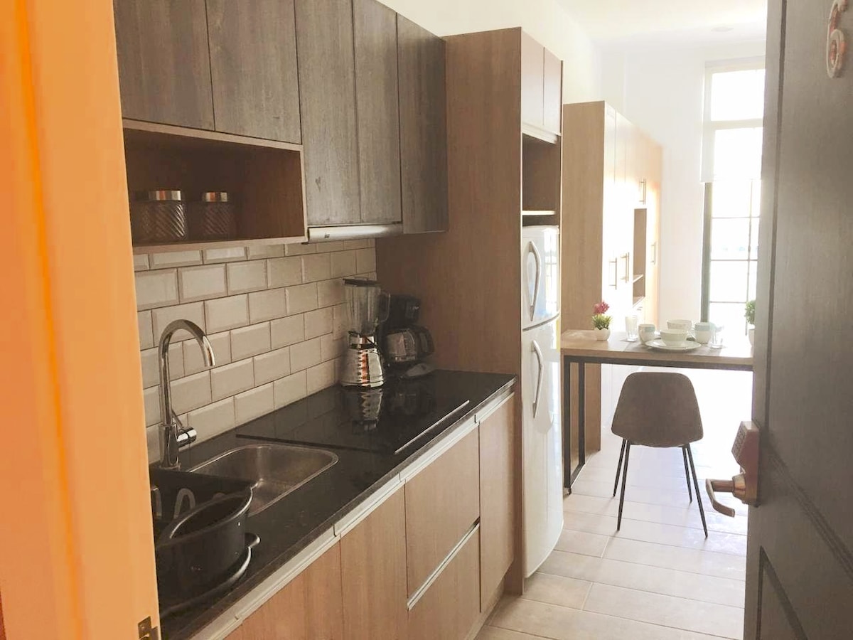 Acogedora y cómoda suite ideal para quien busca estadía en Cumbaya Valley. Está ubicada en el primer piso del edificio Mumbai, construido en 2019. Se encuentra en el corazón del valle de Cumbaya, a 2 cuadras del parque central, cerca de la USFQ, centros comerciales; restaurantes y varias actividades. Transporte público disponible a solo 2 manzanas de distancia. El espacio En un solo espacio tienes un dormitorio doble, un sofá, TV, internet wifi, nevera, cafetera, microondas, cocina equipada.