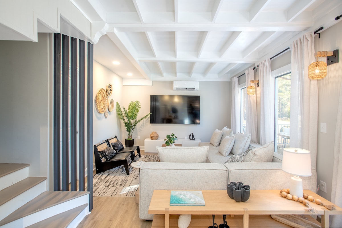 Uzoba seduze nakho konke lapho uhlala kuleli khaya elihle, elikhanyayo nelinomoya ophakathi nedolobha lase-New Bern eline-Waterview, igceke elingemuva lothango olumhlophe ukuze izinja zakho zigijime kulo, nokupaka okukhulu ngokwanele umahamba-nendlwana, isikebhe, noma i-U-Haul. Sebenzisa amabhayisikili ethu futhi ugibele noma uhambe ngasemfuleni uye kuzo zonke izindawo zokudlela nezindawo ezikhangayo ezihlinzekwa yidolobha lase-New Bern. Ungaqalisa ibhodi lakho lokugwedla noma i-kayak khona kanye emfuleni cishe ngamamitha angu-300 ukusuka egcekeni lethu elingemuva.