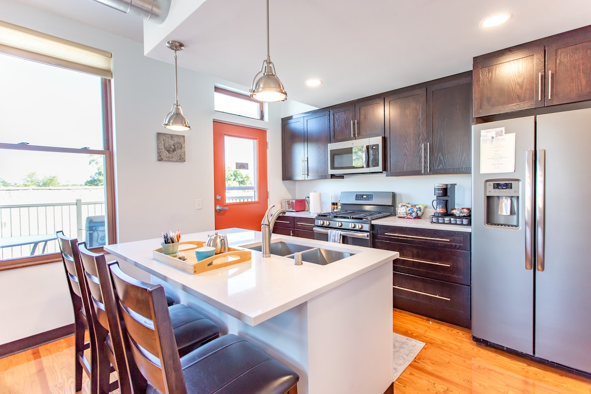 I-Loft 3 yizinyathelo ezingu-40 (izindiza ezingu-2 zezitebhisi) ngenhla kwe-Monroe Square. Kuyinto yokukhuphuka, kodwa ukubuka kuwufanele ngokuphelele! Kusanda kulungiswa ngo-2021, futhi kukhumbuza uhlamvu luka-1859 lwesakhiwo, le ndawo ihle, ithokomele, futhi iyinomusa ngempela. Ngempela izinyathelo ezimbalwa kude nendawo yakho yokungena yi-Sunrise Donut Cafe, ehlanganisa ama-donuts aqokiwe kanye nemenyu ephelele yezinto zekhofi ezinhle kakhulu. Ukusuka lapho, hlola yonke i-Square ukuze uthole ukudla, iziphuzo, nokuthenga endaweni ehlukile ye-Main Street.