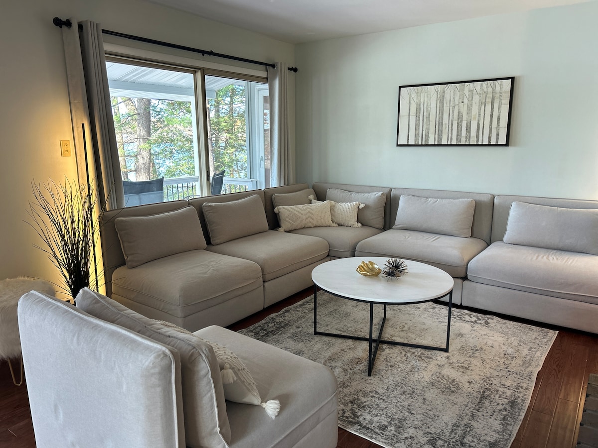 Phumula nomndeni wonke kuleli khaya elinokuthula elisechibini. Hlala ngaphakathi uthokomele ngasendaweni yomlilo futhi ujabulele wonke amasevisi obungaba nawo ekhaya; Noma ukhiphe ngaphandle uphumule eceleni kwechibi! Jabulela isihlabathi sasebhishi ezinyangeni zasehlobo, ngena emanzini ngama-kayak anikeziwe noma athokomale ngaphansi kwezinkanyezi ngomlilo we-bonfire noma we-propane yangaphandle. Isikhathi sasebusika? Jabulela ukudoba eqhweni echibini lethu nanoma yimaphi amachibi endawo aseduze. Wena nomndeni wakho nizokhululeka lapho nihlala e-Tranquil Waters!