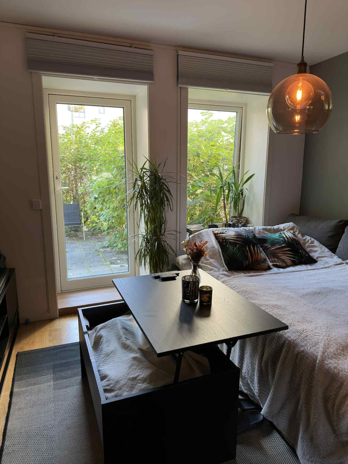 Jabulela okokuzithokozisa okusesitayeleni endaweni emaphakathi. Ifulethi linekamelo elinombhede onamasentimitha angu-180 nombhede omuhle kasofa onombhede ophindwe kabili ongamasentimitha angu-160 egumbini lokuphumula. Ngaphesheya komgwaqo ungazitika ngamakhekhe amnandi avela ebhikawozi lase-rosenborg! Imizuzu engu-2 kuphela yokuhamba ngezinyawo ukuya ohlangothini olubalele unamathuba kokubili indawo yebhasi (ukuhamba ngokuqondile ukuya esikhumulweni sezindiza) indawo yokudlela, impilo yasebusuku nokuthenga. Ifulethi linendawo yokungena ephrayivethi ngokuqondile ukusuka emgwaqweni.