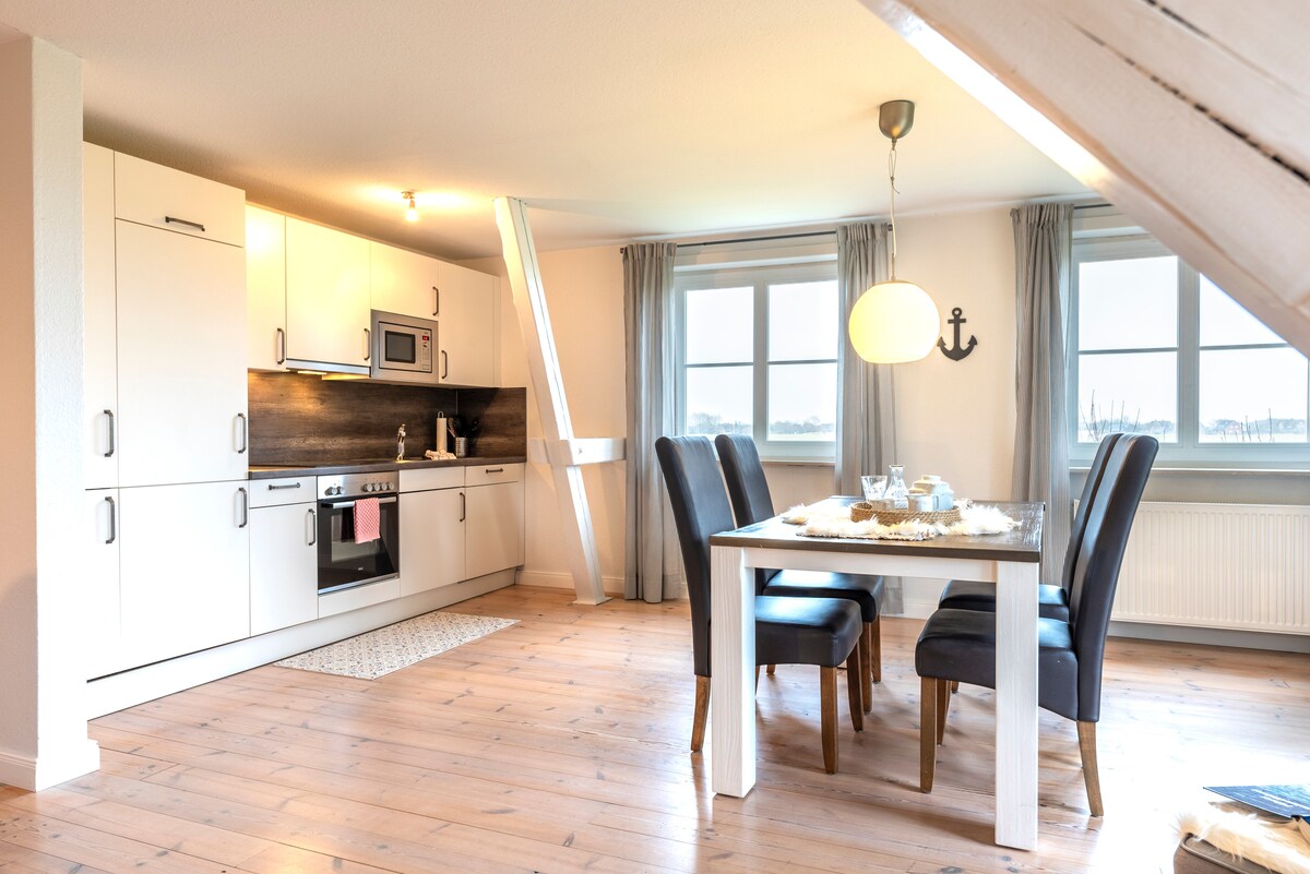 Igumbi elisophahleni lale ndlu enhle yaseGründerzeit livuleka nhlangothi zombili. Ibheke entshonalanga nendawo enhle kakhulu phezu kwetheku nedolobha elidala lase-Flensburg. NgaseMpumalanga ungene esifundeni esizolile sikakaputeni nase-St. Jürgen. Amabhalkhoni amabili anikeza izindawo ezishiswa yilanga nganoma yisiphi isikhathi sosuku, ngaphakathi ungalindela amagumbi alungiswe kahle, indawo yokubasa, ikhishi elimnyama elihle...