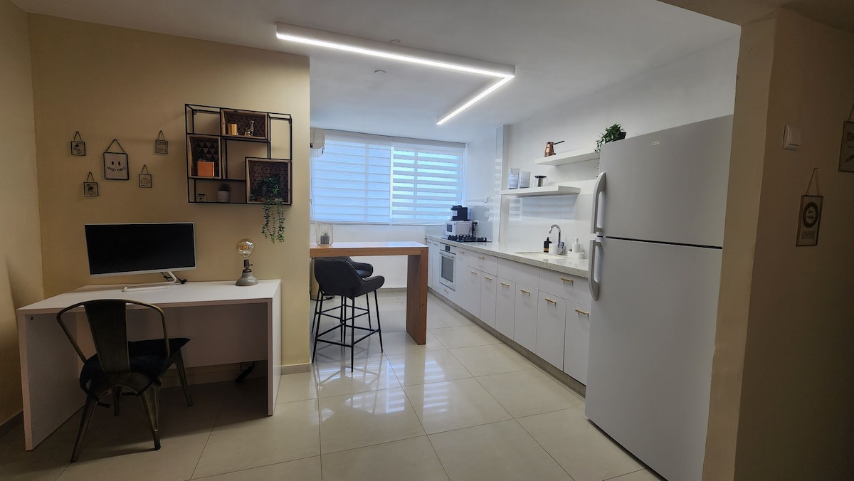 יחידת דיור מעוצבת ע"י אדריכלית, הממוקמת בקומת כניסה נגישה, כוללת קומת גלריה אינטימית, חדר רחצה פרטי, מטבחון מאובזר ושתי טלוויזיות חכמות. ממוקמת במרכז העיר, במרחק הליכה קצר מחוף הים, מסעדות ובתי קפה. היחידה ייחודית, דיסקרטית ומעניקה חוויית אירוח נוחה, פרטית ואלגנטית – מושלמת לזוגות או לאורחים המחפשים שקט וסטייל בלב העיר. העיצוב מוקפד וכולל תאורה חמימה, ריהוט מודרני ונגיעות יוקרה. מתאימה גם לשהייה ארוכה, לעבודה מרחוק או חופשה רגועה. שילוב מושלם של נוחות, יופי ומיקום מנצח,אין להביא ילדים או תינוקות