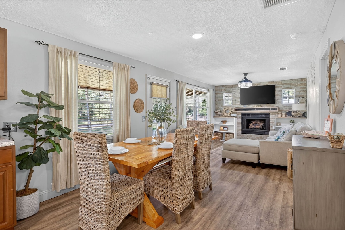 Phindela emuva ku-Cove History ngale ndlu eyakhiwe ngamapulangwe yenhlanzi yasekuqaleni! Leli gugu elisesitayeleni nelithokomele lilungele imibhangqwana! Jabulela usilingi wamapulangwe wangempela, umhlobiso wakudala, iziqongo zekhawunta ye-granite, amashalofu e-oki abukhoma, ibha yesidlo sasekuseni kanye neshawa. Ihlezi ngaphansi kwe-oki enkulu ebukhoma futhi izungezwe amadekhi. Le ndlu eyakhiwe ngamapulangwe inikeza indawo yokuphumula yothando nokuphunyuka ekuphileni kwansuku zonke!
