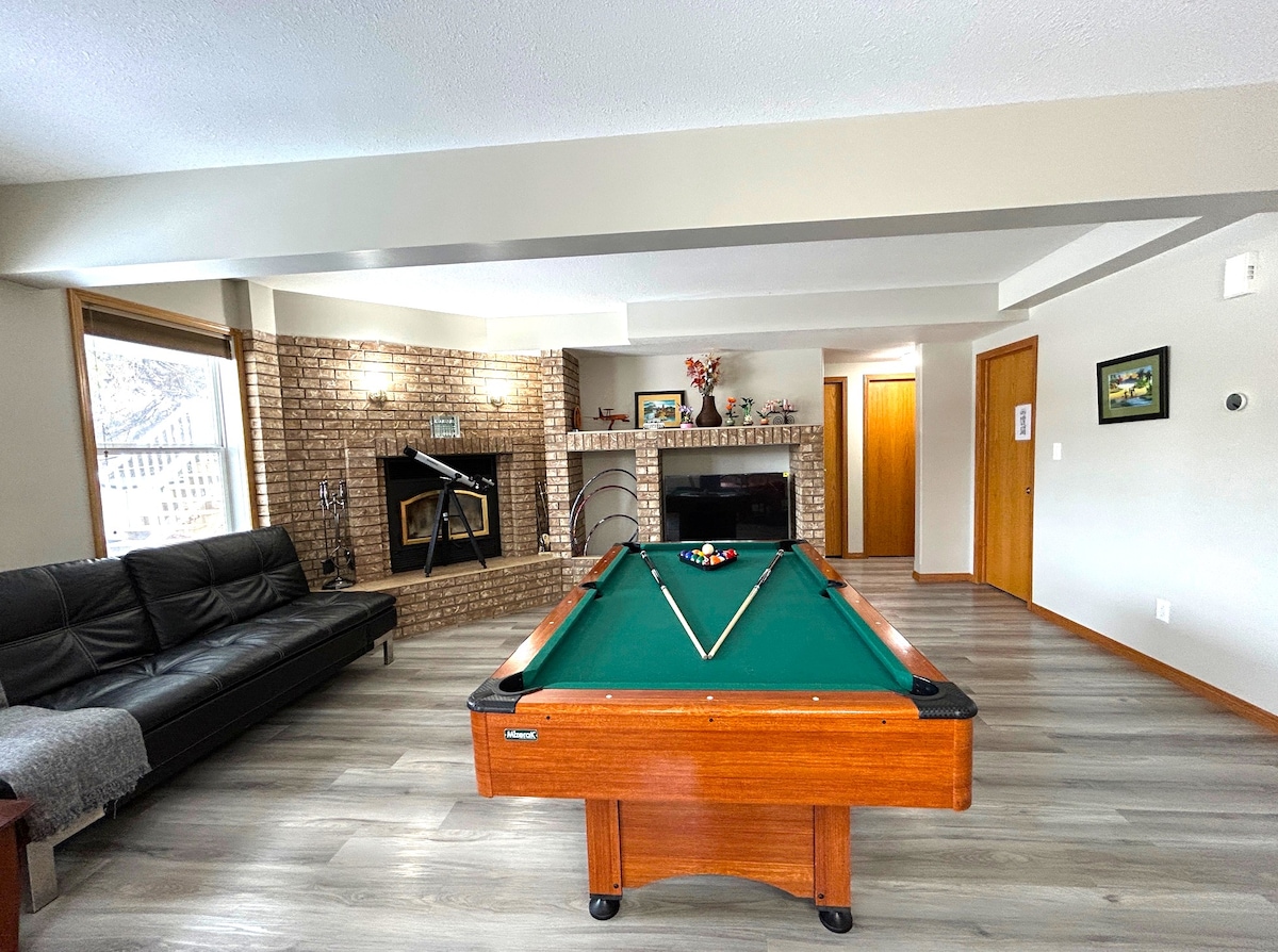 Indawo ekahle yokuhlangana komndeni wakho omkhulu noma iqembu elihlangene! Siyakwamukela e-The Great Lake Gathering, indawo yakho ebanzi eyi-3,400 sqft eyimfihlo enomthi eqhele ngemizuzu engu-5 uma usuka e-Sylvan Lake Beach. Lapha, amakamelo angu-6, amagumbi okugezela angu-4 aphelele, namakhishi AMABILI anemishini ephelele kusho ukuthi wonke umuntu unendawo nokunethezeka akudingayo. Chitha izinsuku zakho uphumule kudekhi, ucele abangane ukuba badlale i-pool, noma nihlangane endaweni yokubasa noma endaweni yokubasa ethokomele engaphakathi. Lapha yilapho izinkumbulo zenziwa khona.