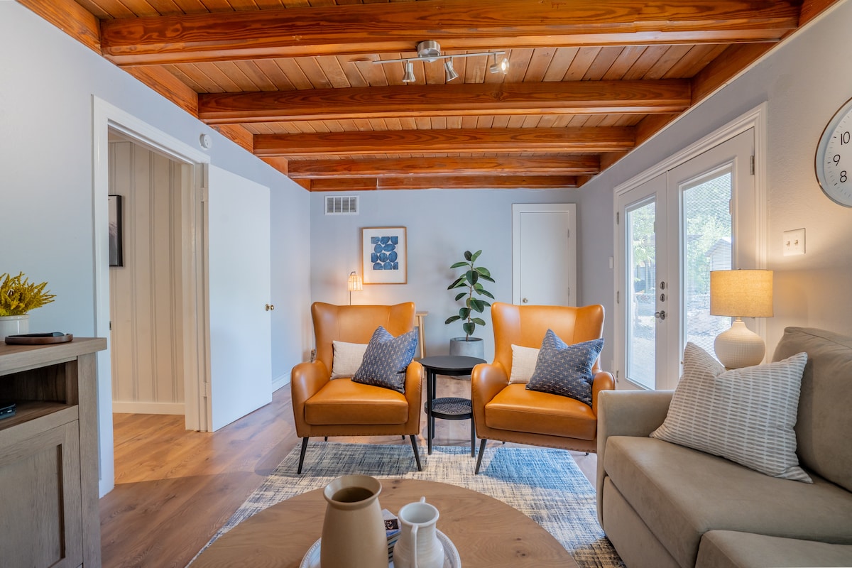 Zijabulise ngokuvakasha kwakho okulandelayo e-Austin ngale bungalow yesimanje yama-1950 ephakathi nendawo endaweni enhle yase-Crestview. Ibanga lokuhamba ngezinyawo ukuya e-Brentwood Park nezikhungo zendawo ezidumile ezinjenge-JuiceLand & Taco Deli. Ilungele imindeni, imibhangqwana, abantu abahamba bodwa, nabahamba ngebhizinisi. Amamayela angu-3 ukuya e-Q2 Stadium (ikhaya le-Austin FC) nemizuzu engu-15 kuphela ukusuka esikhumulweni sezindiza! Kulala izivakashi ezingu-6 ezinamakamelo angu-2, igumbi lokugezela elilodwa + usofa wokulala. Igceke elingemuva elikhulu, elibiyelwe kuhlanganise novulandi.