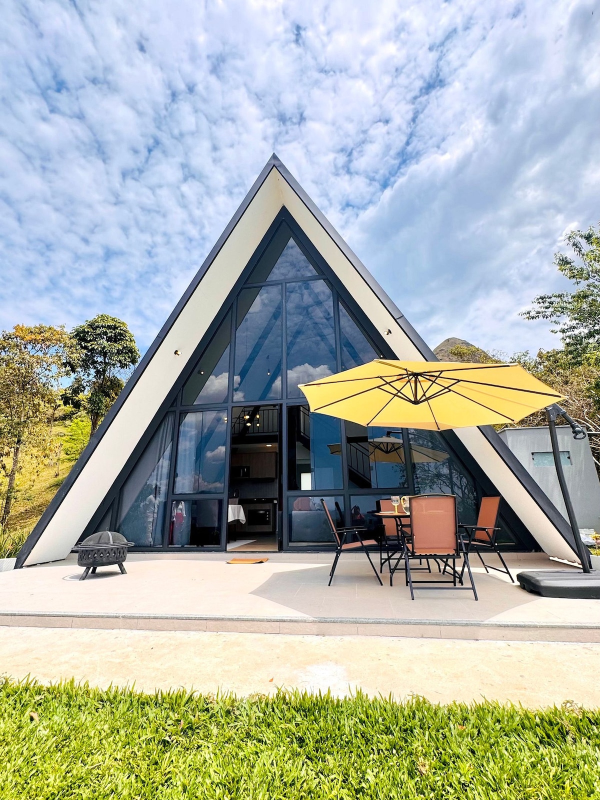 Indlu yeholidi eyakhiwe ngokhuni i-Indaiá enomfula wokugeza