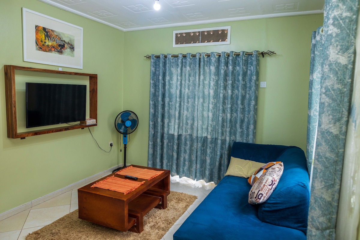 Ikhaya lakho likude nekhaya! Le ndlu egcinwe kahle inegceke elivulekile, elilungele ukuphumula noma imisebenzi yangaphandle. Jabulela ukunethezeka kwesimanje nge-inthanethi esheshayo nendawo yokuhlala ethokomele nekhishi elinakho konke. Itholakala emizuzwini embalwa ukusuka edolobheni elikhangayo, uzokwazi ukufinyelela kalula ezikhangayo zendawo, izindawo zokudlela, nokuthenga. Futhi, ngamandla ethu asekelayo, ungaphumula kalula wazi ukuthi uzohlala uxhumekile, kungakhathaliseki ukuthi yiziphi izimo. Indawo ekahle kakhulu yokuphumula nokujabulela i-Kampala