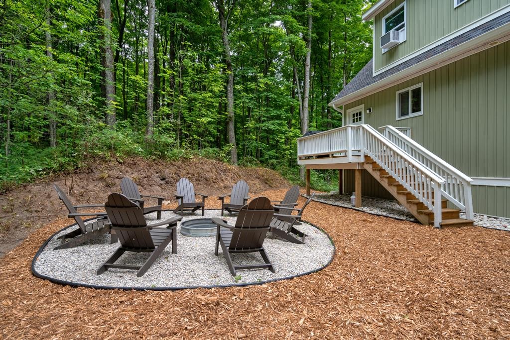 Uyemukelwa ekuvakasheni kwakho okumnandi kwase-Up North! Ifakwe ezihlahleni kumahektare angu-10, indawo yethu yokuvakasha ethokomele ihlanganisa ukunethezeka kwesimanje nobuhle bendawo yokuvakasha enamapulangwe. Phuma futhi ukhethe izindawo ezithokomele zokuhlangana. Ngemuva, phumula uzungeze i-firepit eshisa izinkuni, ezungezwe izihlalo ze-Adirondack nezibani zezintambo ezenza amahlathi akhanye ebusuku. Ngaphambili, jabulela umgodi womlilo we-propane emphemeni, olungele ukuphuza ikhofi ekuseni noma ukugoqa ngengilazi yewayini ngaphansi kwezinkanyezi.
