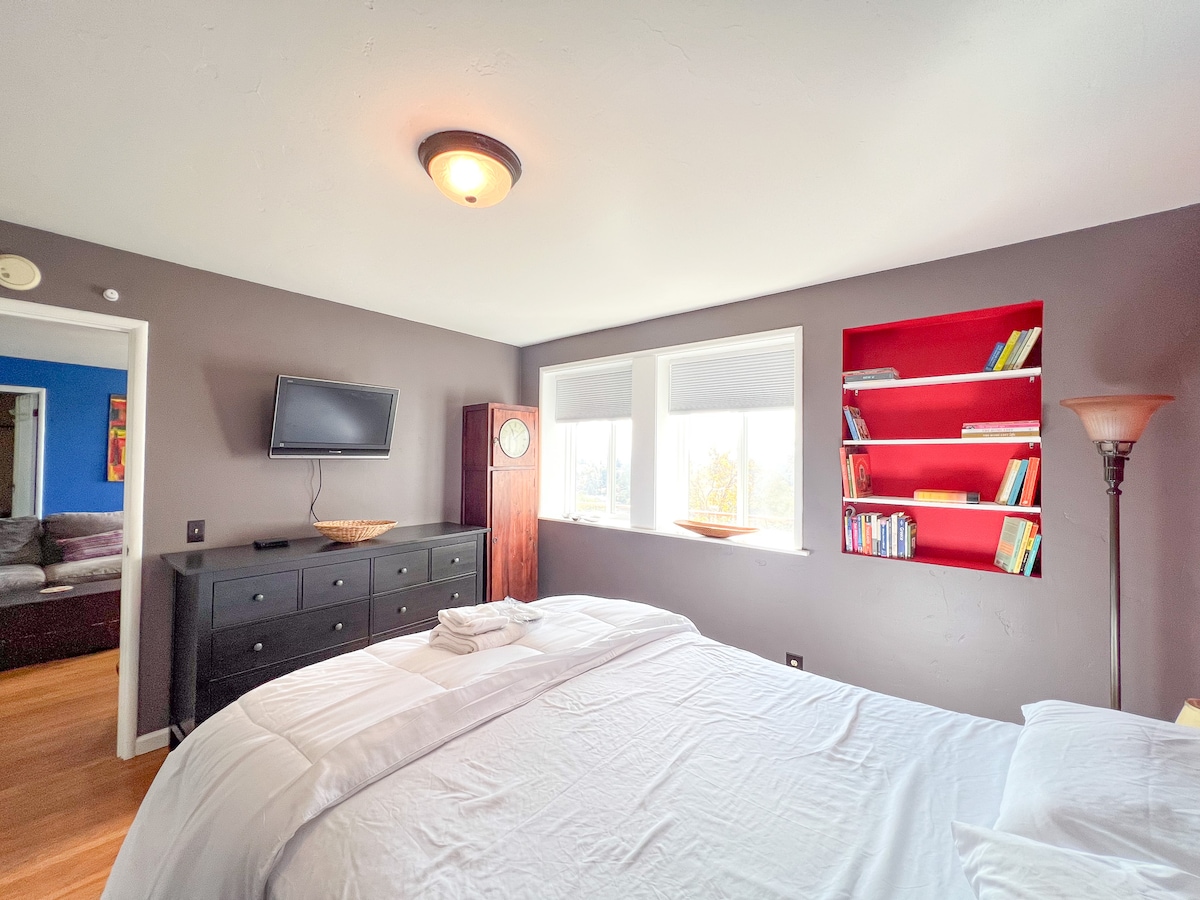 Ifulethi le-studio elinakho konke ekhaya lase-Alameda victorian. Ivulekile, inamasevisi esimanje (i-WiFi, i-Netflix), ikhofi yamahhala netiye, umbhede olingana nendlovukazi, negceke elikhulu, elihlanganyelwa nendlu eyinhloko. Indawo yokungena ehlukile egcekeni elingemuva. Izingane ezincane zihlala endlini ephezulu okwesikhashana (bheka “amanye amanothi”) futhi zingakhala kuze kube ngu -9:30ntambama. Siyindawo elungele izinja futhi siyakuthanda ukubungaza amaphuphu (umkhawulo ongaba ngu-2, indlu eqeqeshiwe)! Sicela uqaphele ukuthi asikwazi ukuhlalisa amakati ngalesi sikhathi. I-Lab ihlala endlini.