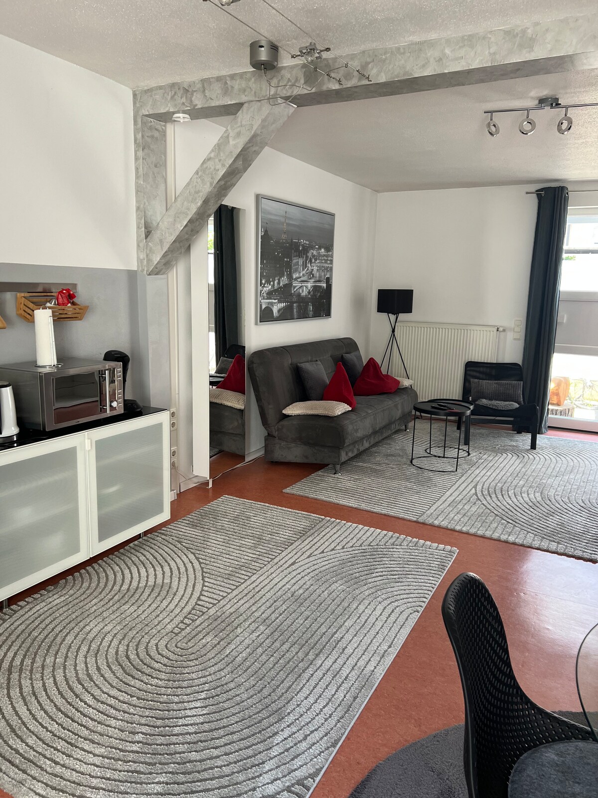 Ifulethi lesimanje elinamakamelo angu-2 eduze ne-Audi/Lidl. Ukuhamba imizuzu embalwa ukuya endaweni yokumisa isitimela esilula. Ilungele abahambi abahamba bodwa nemibhangqwana! Ifulethi linendawo yalo yokungena endlini (esitezi esiphansi) ne-terrace encane. Ikamelo lokulala linefenisha yombhede ongu-1.40 m. Indawo yesibili yokulala umbhede owusofa okhululekile egumbini lokuphumula onamamitha angu-1.30 x 1.90. Indawo yokugezela ekhanyayo, evulekile ene-shower ye-mega (120x110 cm) yamukelekile kakhulu. Indlu yangasese ihlukile!