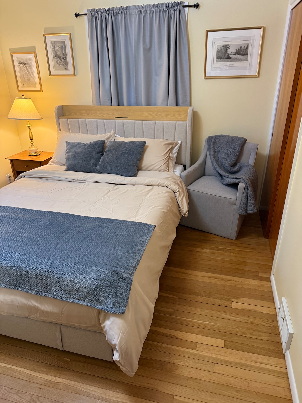 Private 3-room apartment in house • 700 sq ft • Steps to the town center. Kids and dogs welcome. Dog and babysitting avaliable on site. Plush king bed and big-screen TV sitting area. A futon or trundle bed can be added for a 3rd & 4th guest. Two cozy adjoining rooms serve as a kitchenette & extra room. Massive en suite with tub & shower, plus all your toiletries. Mini fridge, microwave, coffee & tea station. Fast wifi. Private parking. NOTL STR License No. 105-2021