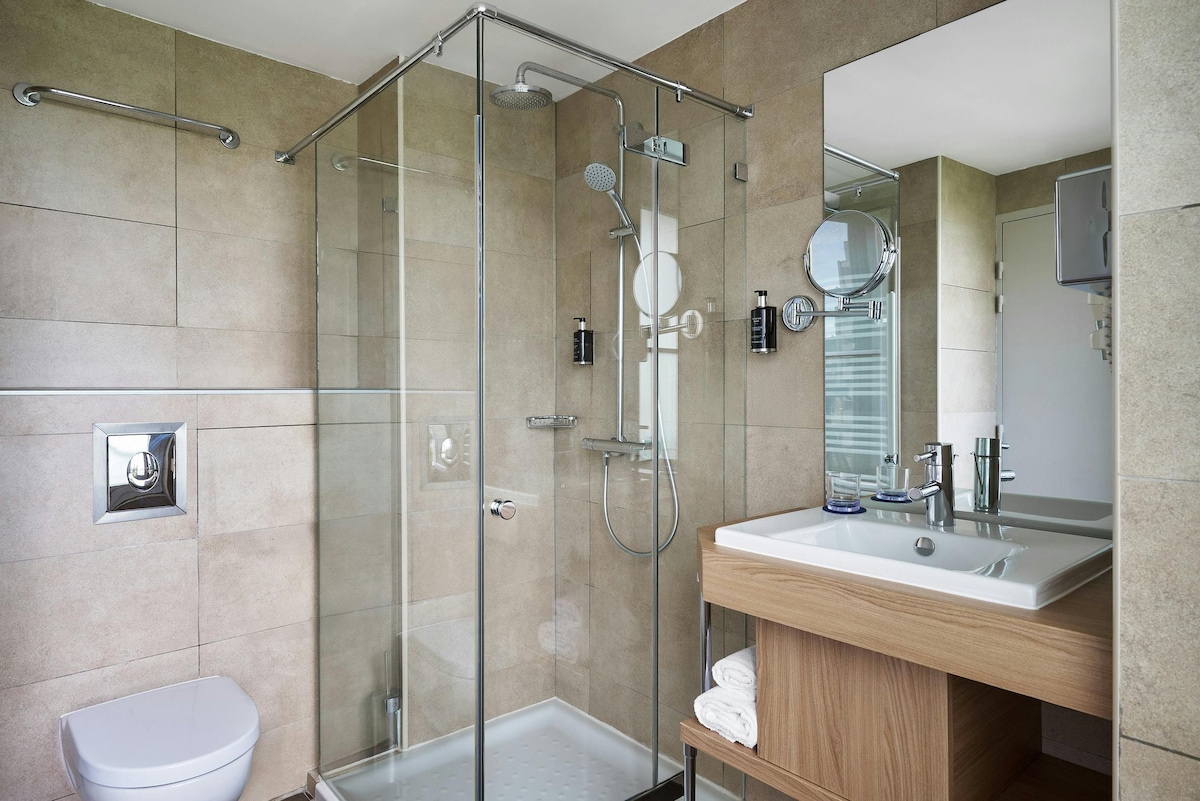 Leli kamelo elikhanyayo nelithokomele linombhede owodwa, i-air conditioning, i-TV efakwe odongeni, ama-blinds acinyiwe ne-Wi-Fi yamahhala. Wonke amakamelo e-easyHotel Marseille anikeza ukunethezeka nokuhlanzeka ngenani lesabelomali ukuze ukwazi ukuchitha isikhathi uhlola idolobha lethu elihle ngaphandle kwegumbi lakho lasehhotela. Usayizi wekamelo ongu-11sqm. Sicela uqaphele ukuthi u-1,30 € umuntu ngamunye ubusuku ngabunye intela yezivakashi edolobheni lase-Marseille ayifakiwe enanini le-Airbnb futhi kumelwe ikhokhwe ngokuqondile ehhotela.