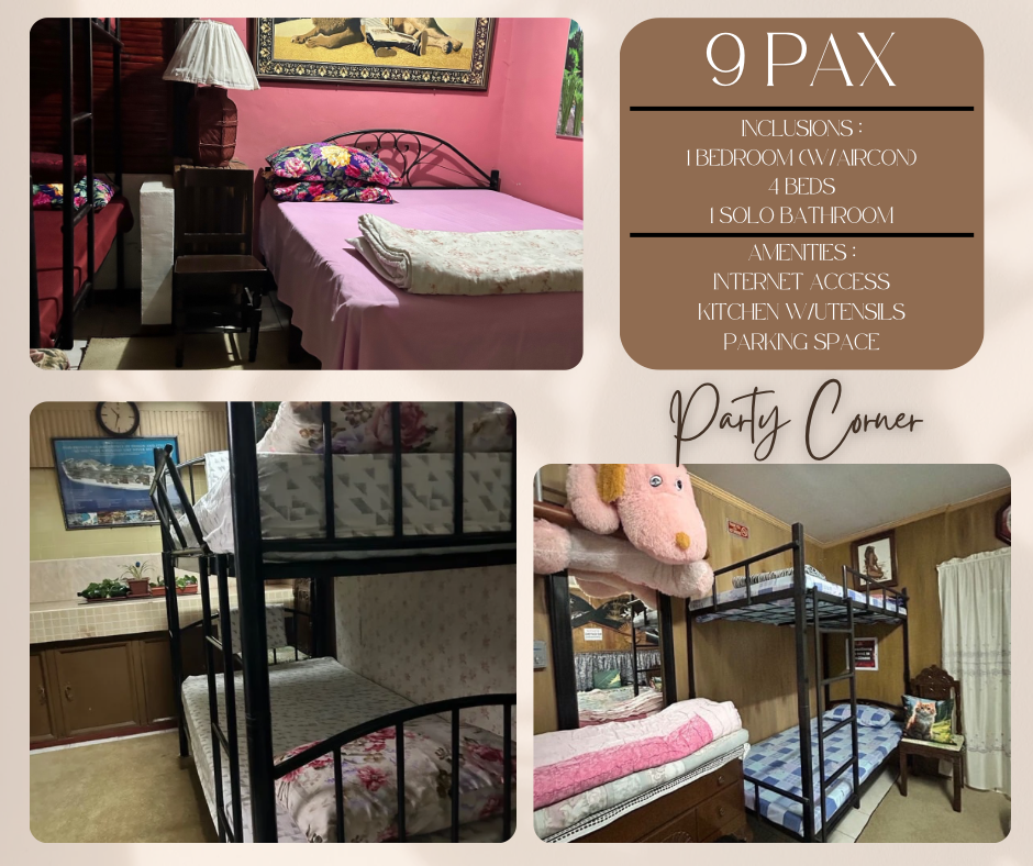 !!PLEASE READ FIRST!! THE PRICE STATED IS FOR THE HOUSE ACCOMMODATING FOR "15 PAX ONLY". Excess pax after 15 will be charged 500/pax/night.We can accommodate up to 23 pax. Kids 7yrs old and below are free of charge as long as they share beds. For celebrations(daytour) we have a different pricing. Just send us a message for inquiries. Parking up to 6 cars,CCTV,swimming pool,big porch/lanai,cooking and bbq facilities,WiFi,bonfire and much more to accommodate your gathering or celebrations.