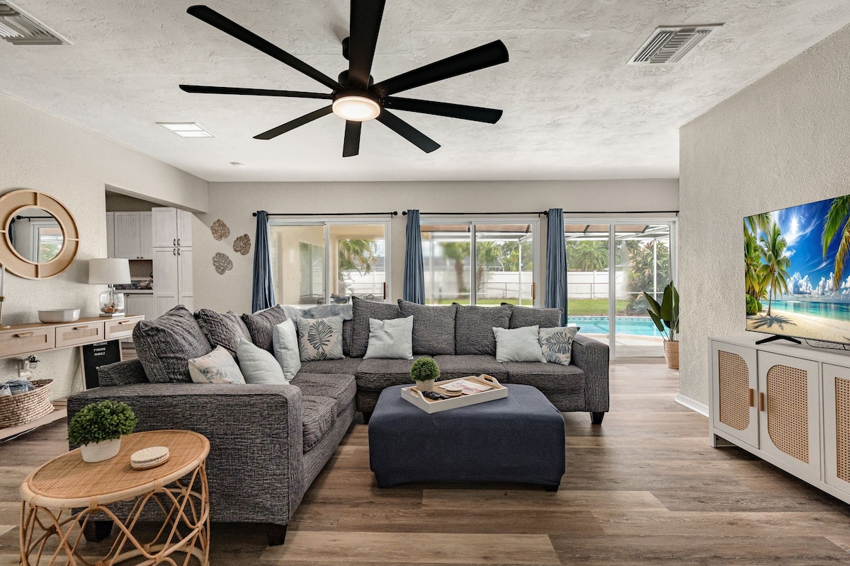 Leli khaya elidala lase-Florida libuyekezwe ngamakhawunta e-granite ekhishini anezinto zikagesi ezintsha, amathayili obumba, nendawo yaphansi yamapulangwe. Kunendawo enkulu yokusakaza egumbini lokuphumula eliyinhloko futhi ngaphakathi kodonga lwezinkuni nophahla oluphelile. Indawo kavulande engemuva kwegceke ilungele ama-BBQ angaphandle. Indawo enhle yenkabazwe inikeza umuzwa wakudala wekhaya lase-Florida. Isevisi engcono kakhulu yi-shower yangaphandle ephrayivethi enokuhlunga izitshalo ezivundile. Ilungele umuntu othanda izinto zangaphandle.