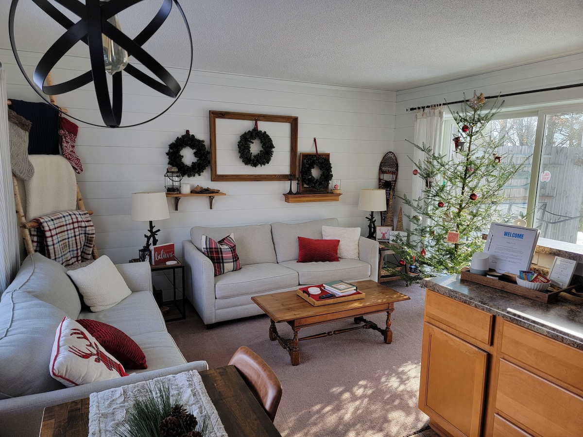 Le suite engusayizi womndeni, ebiyelwe ngokuphelele enendawo yokungena ehlukile endlini yombungazi enamathiselwe inikeza konke ukunethezeka kwekhaya phakathi nemizuzu engu-15 ukusuka e-Minocqua, e-Rhinelander, nokokuzithokozisa kwangaphandle okuhamba phambili- ukuhamba ngezinyawo, ukuhamba ngebhayisikili, ukudoba, ukuhamba ngesikebhe. Ngaphakathi thola izindawo ezikhanyayo, imiqadi egcwele ye-log, kanye nokuzizwa kwe-hobbiton; indawo evulekile yokuphumula enekhishi, itafula, imibhede eyisitezi, usofa omkhulu, i-TV ne-Wi-Fi; ikamelo elinombhede omkhulu nomatilasi womoya ogcwele; igumbi lokugeza eligcwele; igumbi lokudlala. Yonke indawo enekamelo ingeyakho.