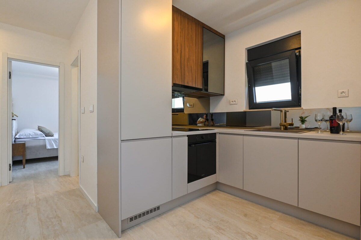 Ifulethi elikhanyayo nelikhulu elinamakamelo amabili, amagumbi okugezela amabili, igumbi lokuphumula elikhulu, nethala elihle elibheke i-Gulf of Pag – lilungele ukudla kwakusihlwa, ama-aperitif, nesidlo sasekuseni. Imizuzu engu-2 nje ukusuka ebhishi, kunendawo yokupaka ephrayivethi ngaphansi kwefulethi. Inkaba yedolobha lase-Pag iqhele ngemizuzu engu-10 uma uhamba ngezinyawo. Ilungele ukuhlala okuphumuzayo ngasolwandle okunezindawo ezinhle nakho konke ukunethezeka okudingayo.