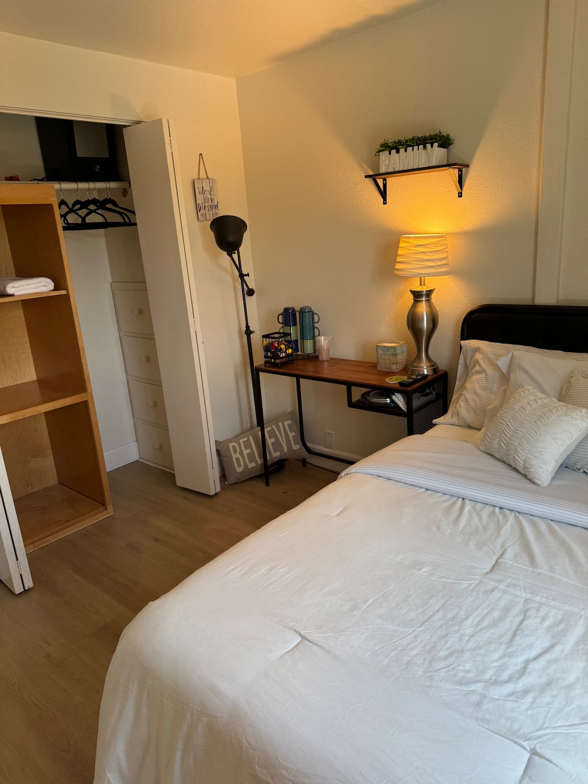 Indlu entsha yokwakha, indawo yokungena ephrayivethi, indlu yasekhoneni, ukungena ngokuqondile emgwaqweni, ukuzingenela. Ivulekile enamakamelo angu-2, igumbi lokugezela elingu-2, ikhishi eligcwele, igumbi lokuphumula, ilondolo ndawonye. Ifakwe umbhede omkhulu owodwa nemibhede emibili; nendawo yokusebenzela. Umkhawulo wezivakashi ezingu-6. Izilwane ezifuywayo zamukelekile endlini. Umkhawulo wezilwane ezifuywayo ezingu-3. Imali yesilwane esifuywayo ingu- $ 50 isilwane ngasinye esifuywayo ekuhlaleni ngakunye, futhi ifakwe enanini lobusuku. Itholakala e-Anaheim, amamayela angu-2.5 ukuya e-Disneyland, amamayela angu-4 ukuya e-Little Saigon, namamayela angu-20 ukuya e-Newport Beach.