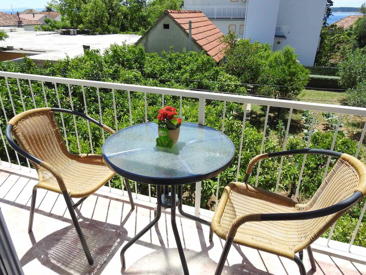 OKUSHA! UKUBUKA KWE-KORCULA Ifulethi lonke elinethala eliphrayivethi elimangalisayo elinokubukeka okuhle kweDolobha Elidala lase-Korcula, ezinye iziqhingi eziseduze nobusuku obumangalisayo obunezinkanyezi. Ifulethi elilungiswe ngokuphelele futhi elisanda kufakwa ifenisha lisemizuzwini eyishumi ngezinyawo ukusuka e-Old Town of Korcula. Ifulethi elivulekile lisesitezi sesibili sendlu yomndeni lapho uzoba nendawo yokungena ehlukile eqinisekisa ubumfihlo obuphelele