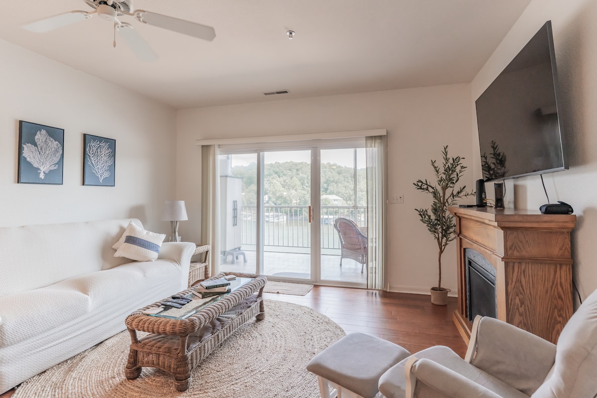 Under new cleanership 9/1! Truly a guest favorite at the lake! If you're looking for the BEST VIEW of the main channel, you’ve found it! 1 bedroom, 1.5 bath, top floor condo with a loft and HUGE private balcony on the water where you can nestle into a hammock and immerse yourself in views of summer sunsets and stargaze. Located on the desirable Horseshoe Bend—close to restaurants, bars, golf courses, & more! The complex also has a pool with lake views (mid May-mid Sept.) Boat+PWC slip May-Sept.
