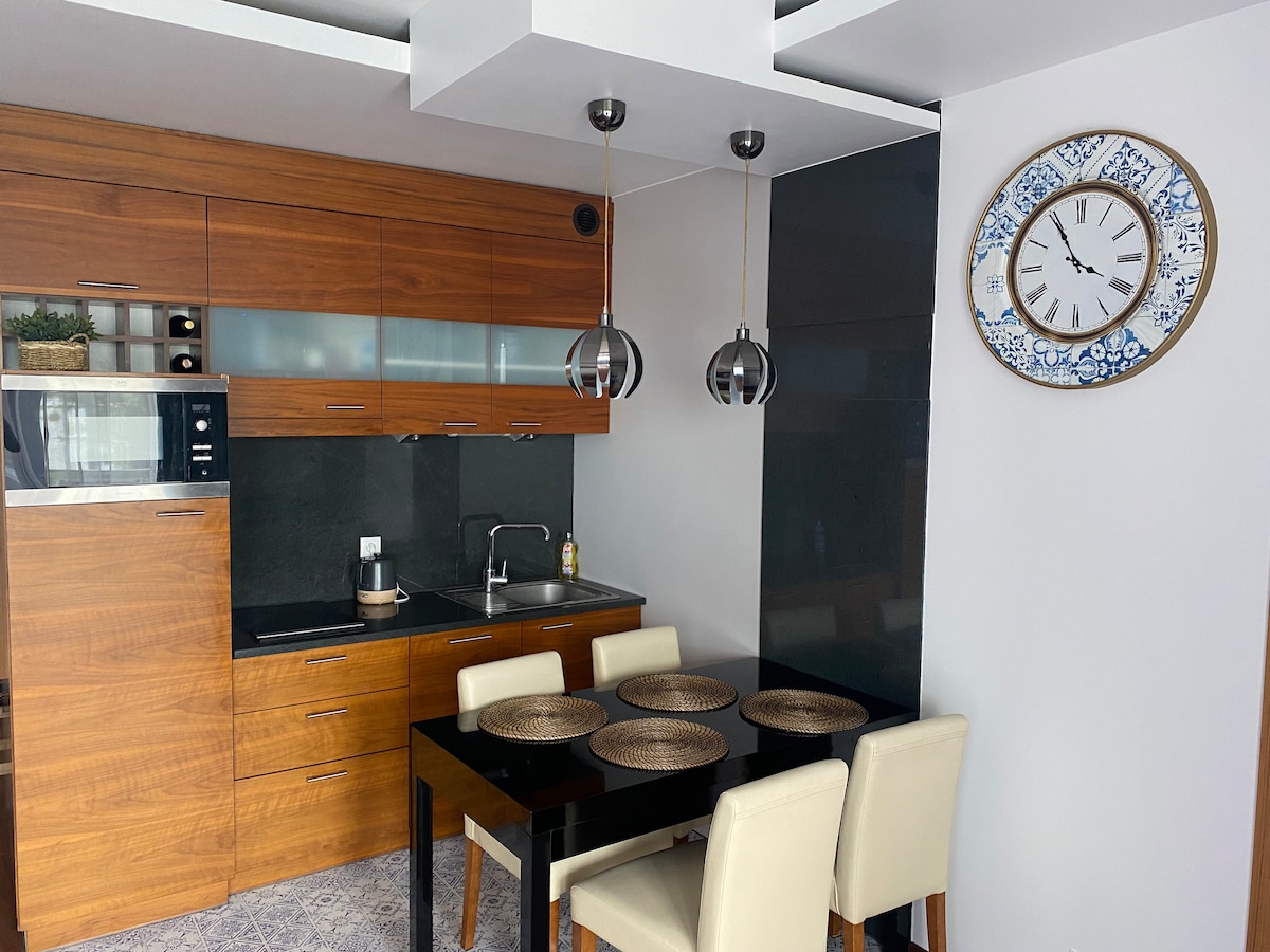 Ifulethi lisendaweni ethulile futhi enokuthula nge-boulevard. Drwęckiego, jednocześnie blisko centrum oraz zaplecza spożyczo-gastronomicznego. Ukuya enkabeni yedolobha imizuzu engu-10 uhamba echibini, eduze kwezinkantolo zethenisi, ibhishi lasedolobheni, imishini yokuqasha amanzi kanye ne-ski lift yamanzi. Ezivakashini ezilahlwayo zamamitha angu-56 zendawo enefenisha ekhululekile. Ifulethi linekhishi elinakho konke, igumbi lokuphumula, ikamelo lokulala, igumbi lokugezela nebhalikhoni elibheke echibini.