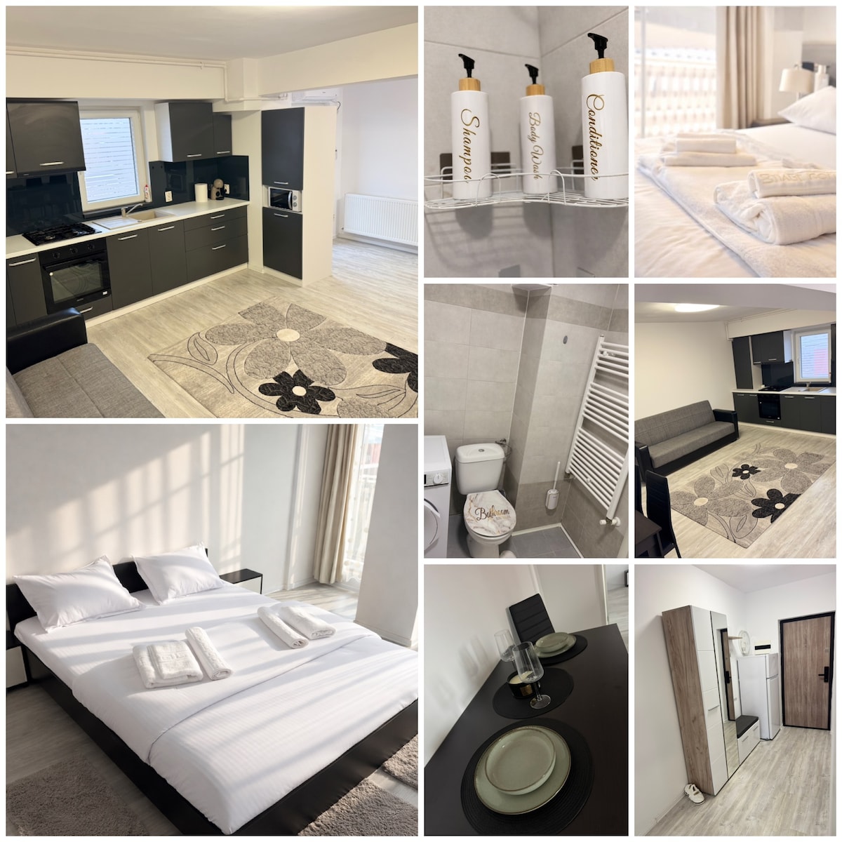 I-Studio 8 itholakala e-Otopeni, iseduze kakhulu (imizuzu engu-5 ushayela) e-The Henri Coanda International Airport futhi iseduze kakhulu ne-Therme Bucharest (imizuzu engu-5 ushayela). Lena indawo yesimanje enekamelo elilodwa, igumbi lokugezela elilodwa, ikhishi elinakho konke kanye nethala. Ukukhanya kwemvelo kuhlasela ngokugcwele i-studio, okwenza kuthokomale kakhulu. Ukuhlanganiswa kwedizayini enhle namasevisi kuguqula iyunithi yokuqasha ibe ikhaya langempela.