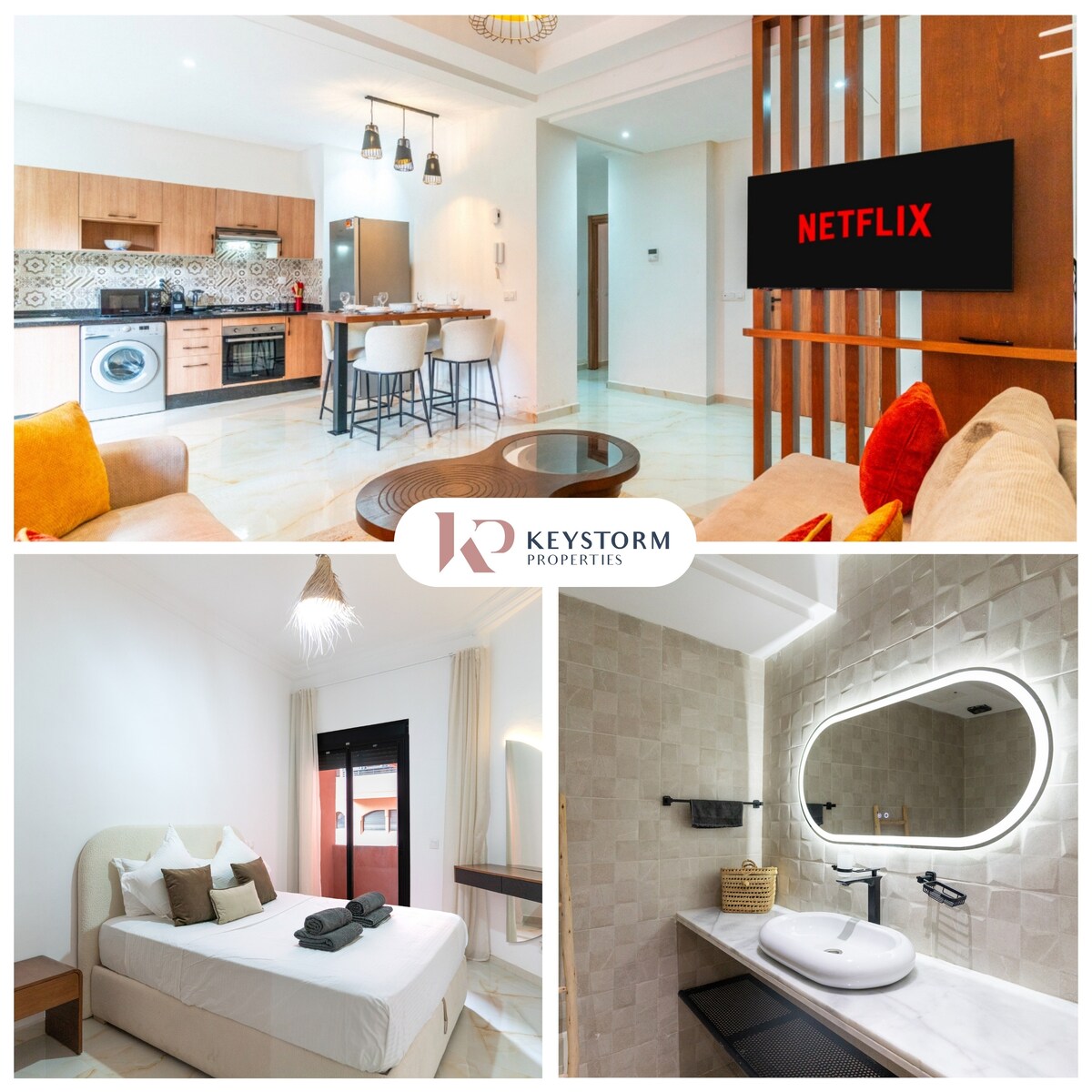 Un appart tout confort - Résidence neuve avec ascenseur et accès sécurisé - Appart fonctionnel, moderne et joliment décoré - Clim, Wi-Fi, TV ... pour un séjour agréable 🏊♂️ Les atouts de votre séjour - Piscine en rooftop avec vue dégagée, idéale pour vous détendre après vos journées de visite - Quartier central et animé, parfait pour découvrir Marrakech - A proximité immédiate des commerces, et lieux de vie 📌 À savoir Nous respectons la législation marocaine (voir règlement intérieur).