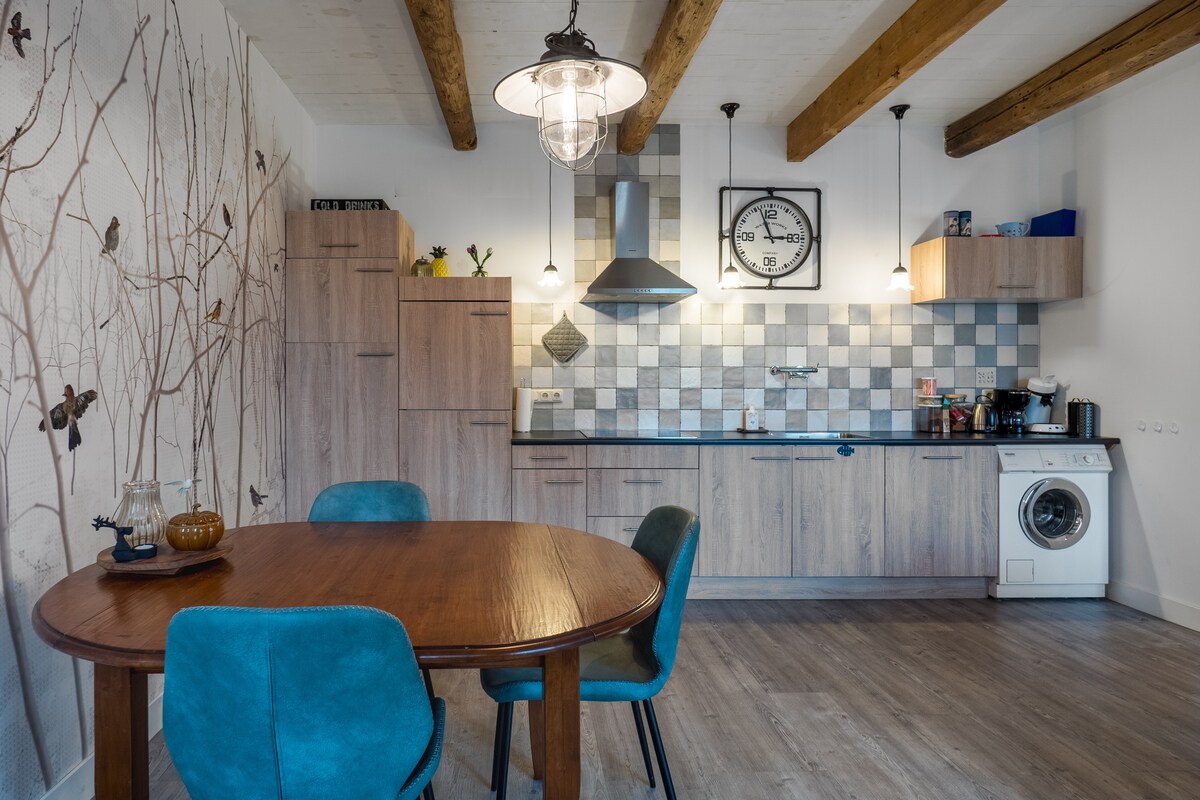 OKUSHA e-Groningen! Ngemva konyaka nohhafu wokulungiswa okunothando, okunesibindi, ekugcineni sivula iminyango ngo-September. Leli fulethi elinemibalabala nelihle elingu-80 m² ligcwele amagugu akudala, usilingi ophakeme, imininingwane yasekuqaleni, isiqhingi esikhulu sasekhishini, neminyango yengilazi enhle enamabala. Uzobe uhlala e-townhouse enomlando omuhle endaweni yase-Schildersbuurt, uhamba ibanga elifushane ukusuka enkabeni yedolobha lase-Groningen, izindawo zokudlela ezinhle, nepaki lase-Noorderplantsoen khona kanye ekhoneni.