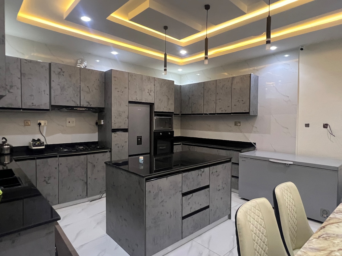 Jabulela ukunethezeka nobuhle kuleli khaya elihle, ingaphandle elihle nengaphakathi elinefenisha enhle. Phumula egumbini lokuhlala elivulekile, phumula emakamelweni okulala athokomele, ngalinye linegumbi lalo lokugezela elihle. Ihlala kwenye yezindawo eziphephe kakhulu e-Lagos. Izinto ezidingekayo: inkundla yethenisi/ye-basketball, izindlela ezinhle zokuhamba/ukugijima. Imizuzu ukusuka esikhumulweni sezindiza, ukungena ngokushesha kuzo zonke izingxenye ze-Lagos. I-Third Mainland Bridge kanye nemigwaqo emikhulu eya ezifundazweni ezizungezile iseduze, ilungele izivakashi zebhizinisi nezokungcebeleka.