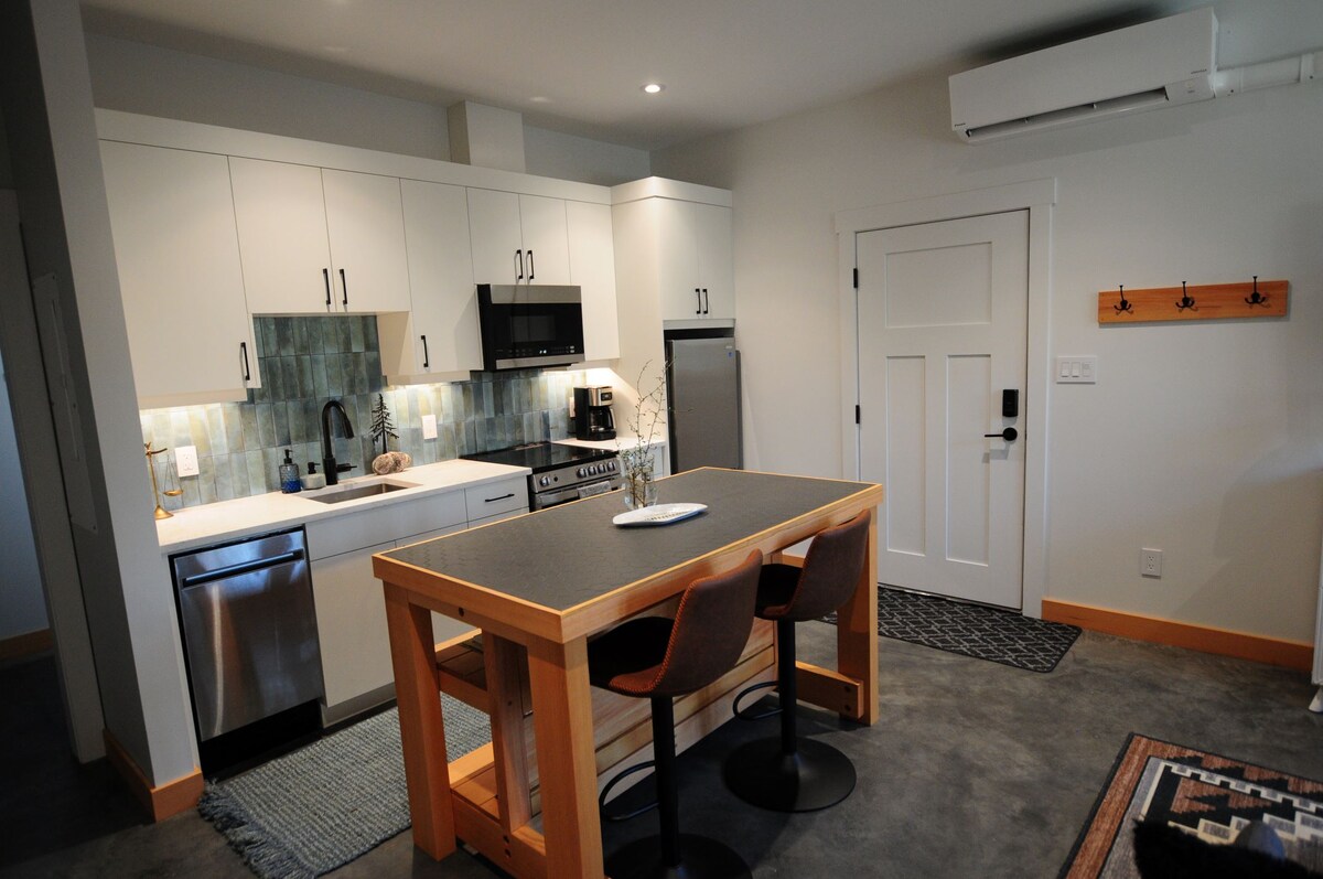 Hamba ngasolwandle, indlu eyakhiwe ngamapulangwe enamagumbi angu-2, ekhanyayo neyimfihlo enendawo yokushisisa, enezindawo ezinhle zokubuka i-Georgia Strait. Le ndawo yokuhlala ebabazekayo engasolwandle inekhishi elinakho konke okudingekayo elinezinto zesimanje, izindawo zokuwasha, kanye ne-spa kanokusho efana neshawa yamatshe amancane. Igumbi lokuphumula elithokomele lidizayinelwe ukuba libukeke kahle ulwandle nezintaba, kube nemisindo yemvelo eyenza kube indawo ekahle kakhulu yokungcebeleka nokuphumula.